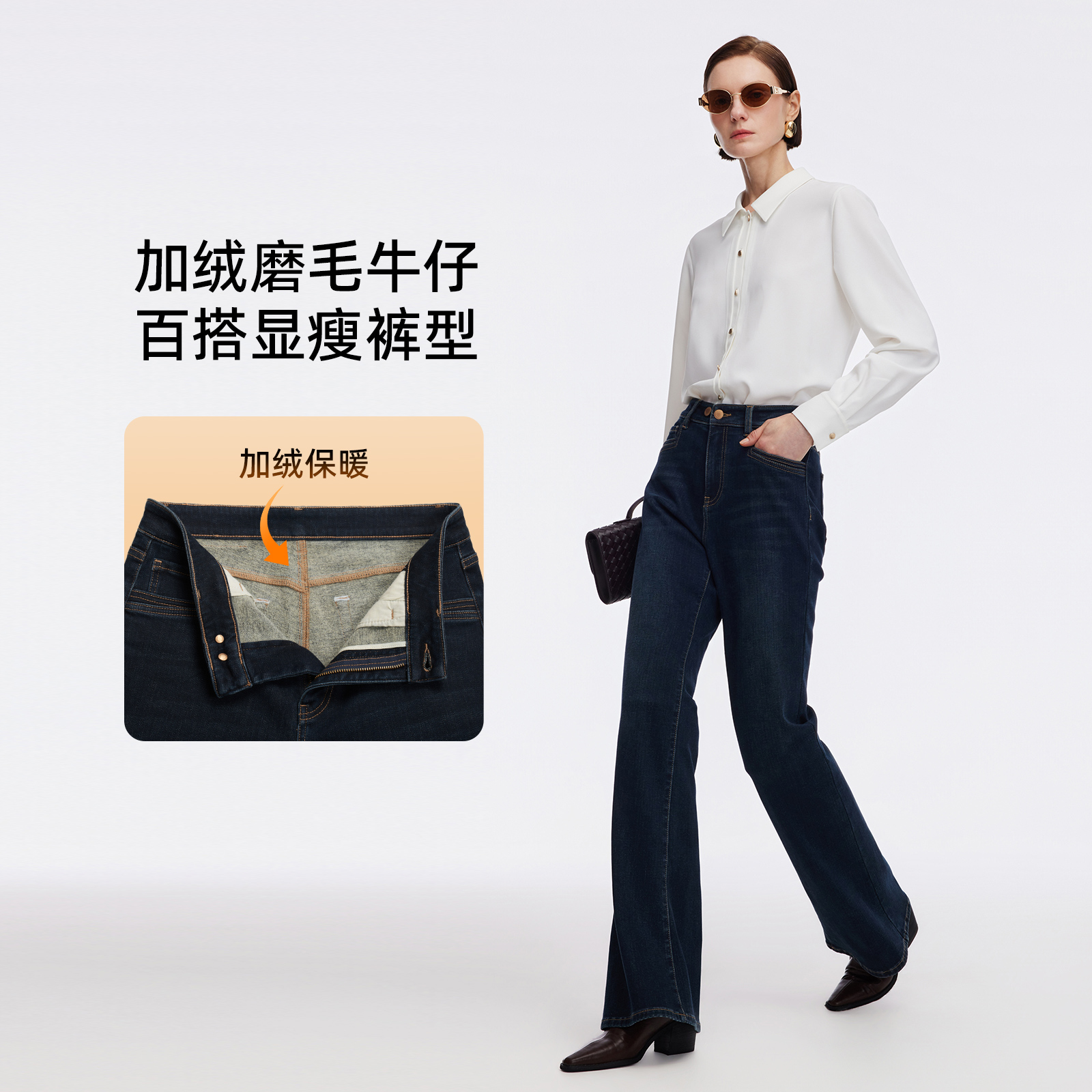 歌莉娅冬季新品加绒喇叭牛仔长裤1ECCCD110