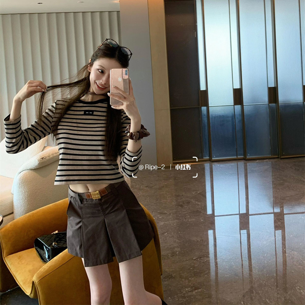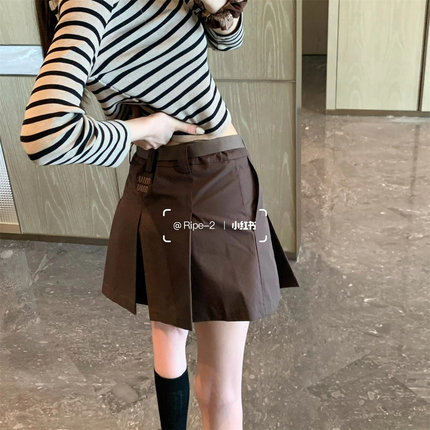 2025年早秋新款韩版宽松休闲百搭高腰显瘦A字半身裙女百褶短裙潮