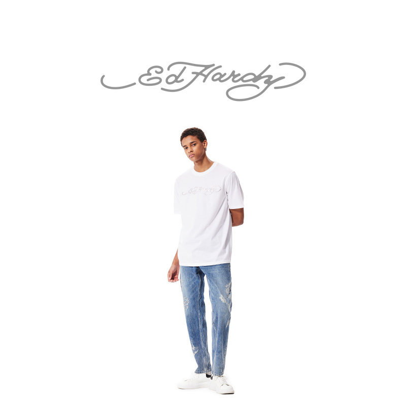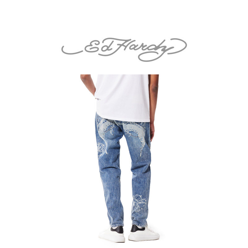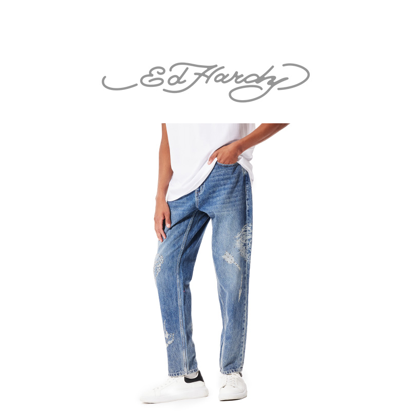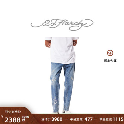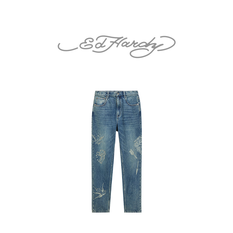 Ed Hardy埃德哈迪秋季新款美式复古烫钻男士时尚水洗牛仔长裤