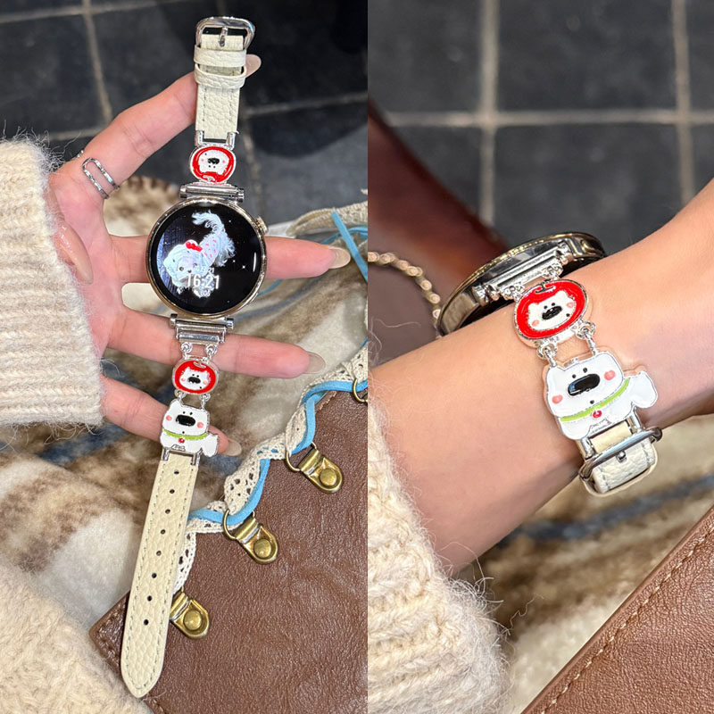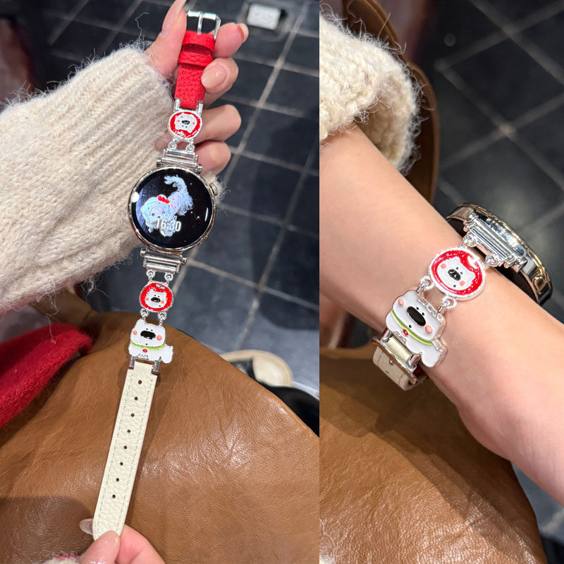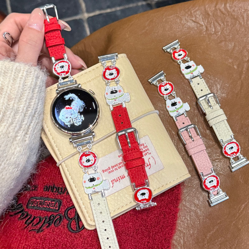 适用OPPO X2mini手表4pro表带女生3新款watch5荔枝纹拼色真皮Sport细款vivo手表watch GT 1设计款iQOO watch3