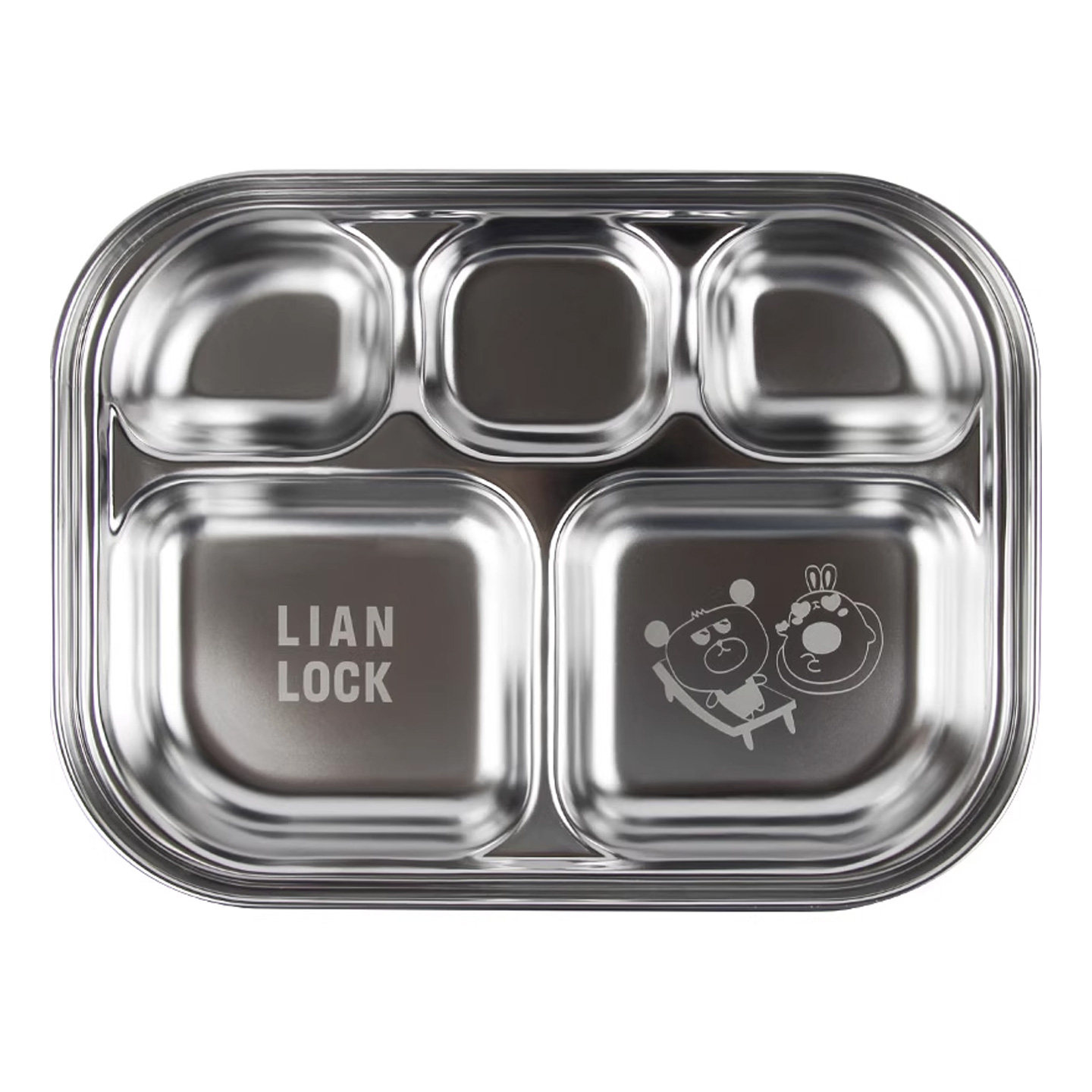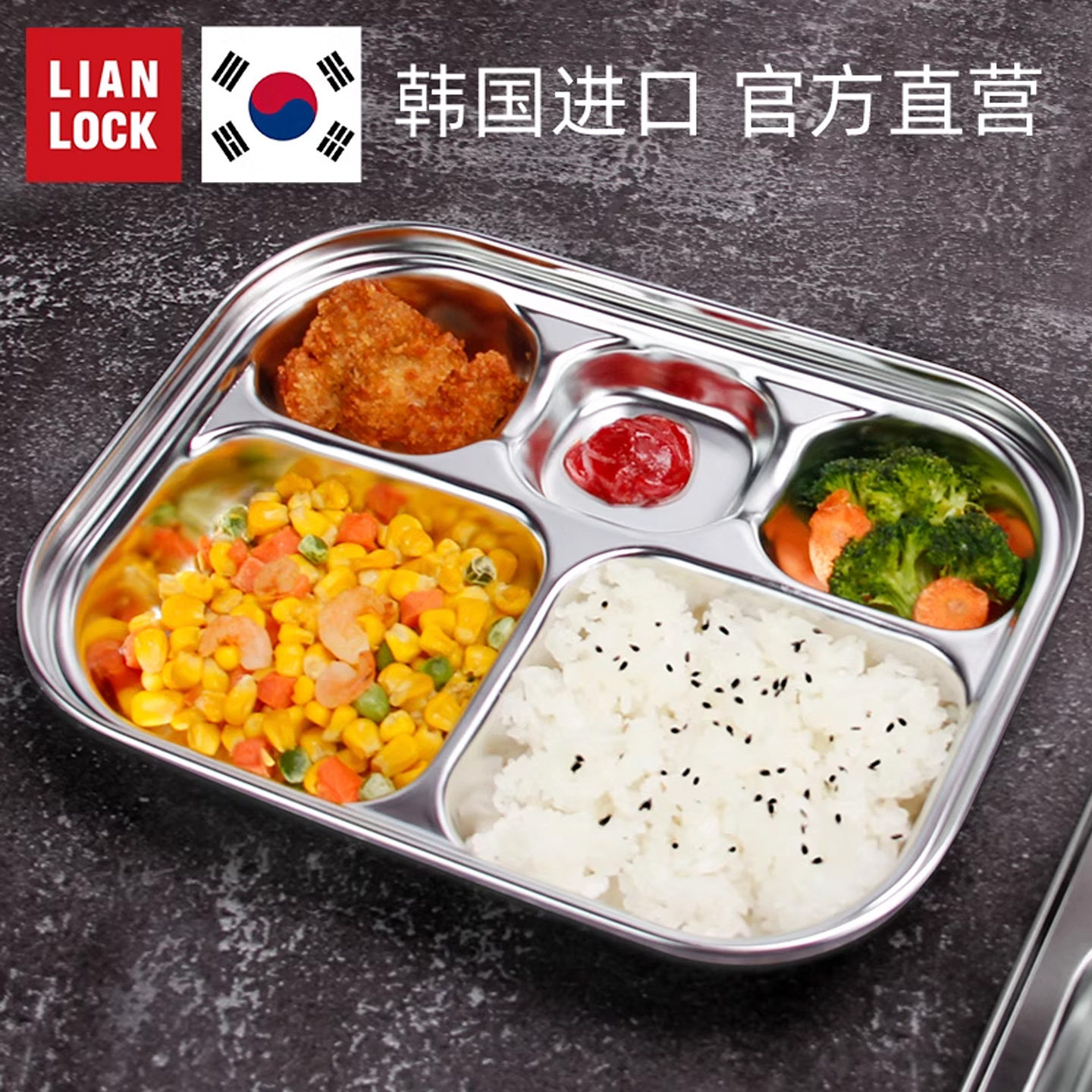 联扣 韩国进口儿童餐具304不锈钢分格餐盘婴幼儿防摔水果盘