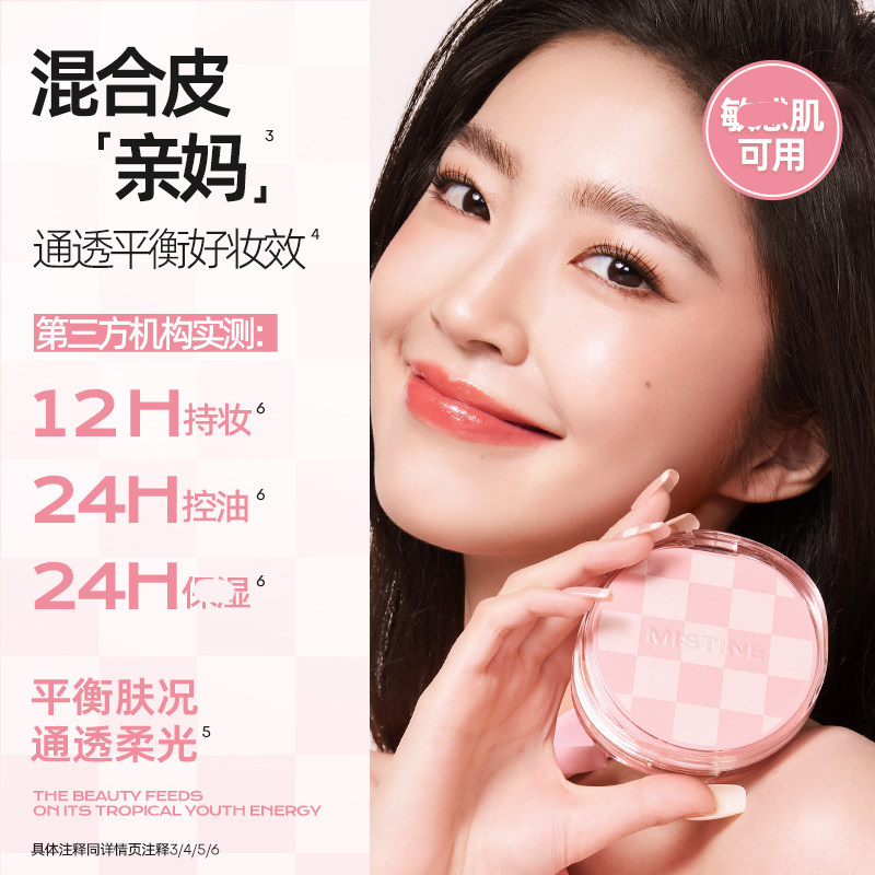 mistine蜜丝婷暹罗spa气垫遮瑕保湿控油桃花棋盘格蜜思婷nishuini
