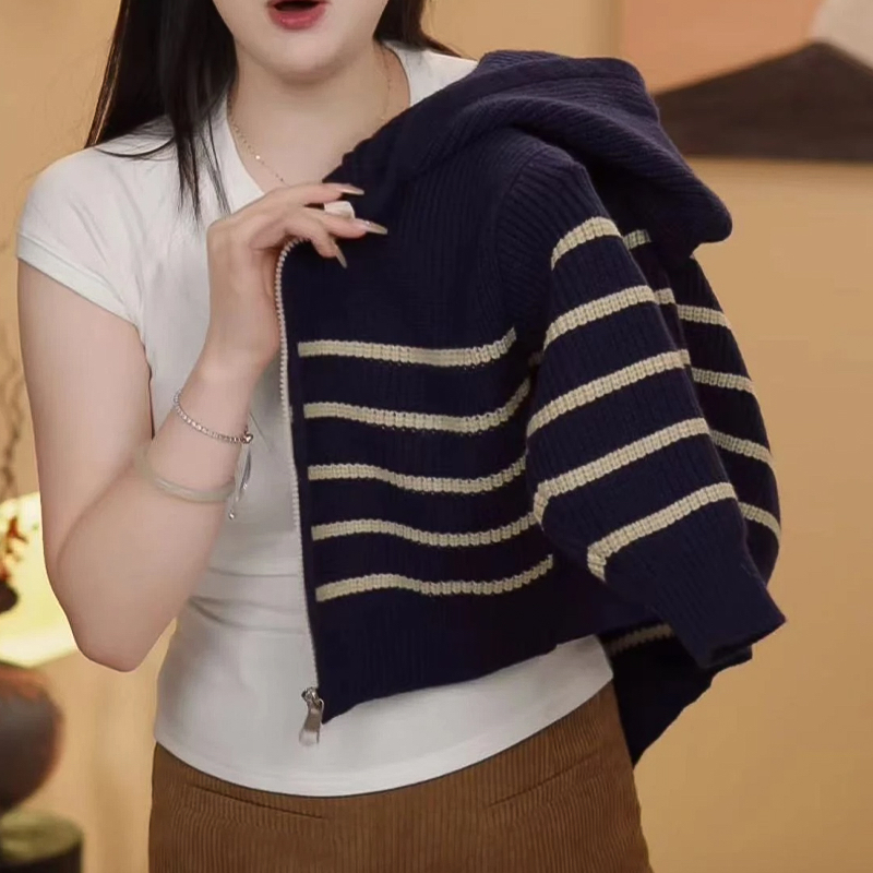 男童韩版毛衣2025秋季新款儿童装连帽条纹针织衫长袖洋气开衫外套