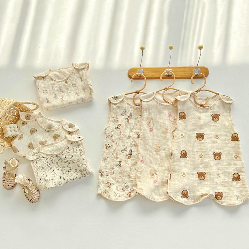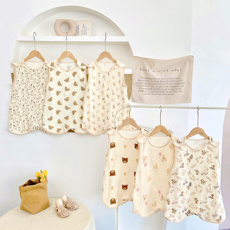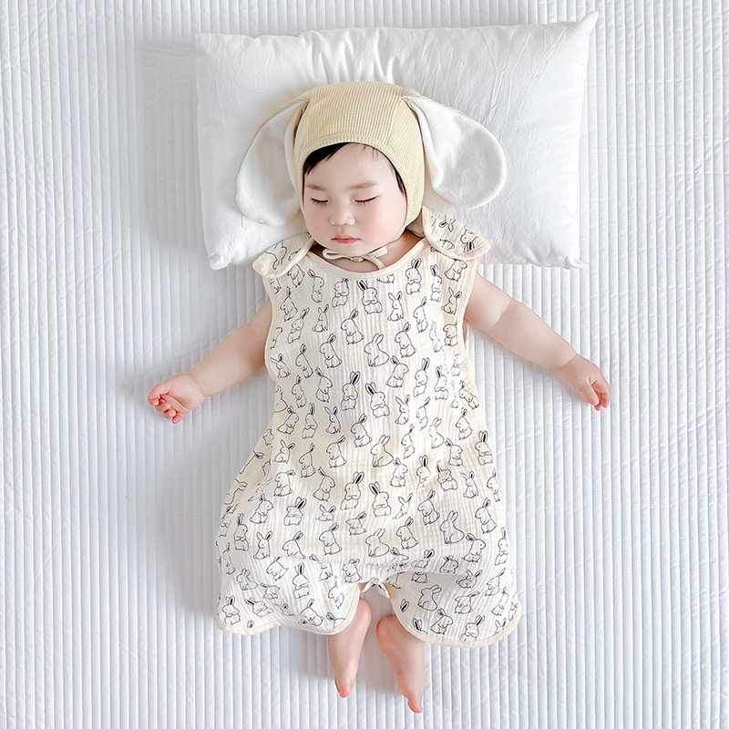 宝宝睡袋春夏薄款纱布无袖背心婴儿新生儿童睡觉防Z踢被空调房