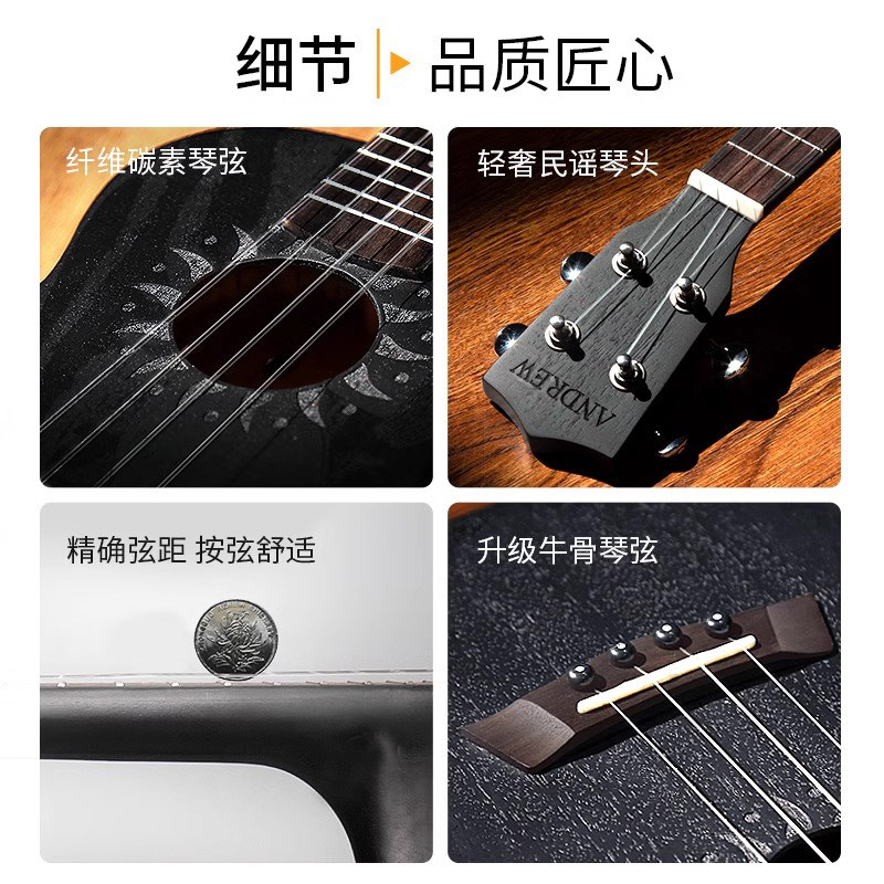 安德鲁23寸尤克里里男女生初学者乌克丽丽黑色ukulele小吉他