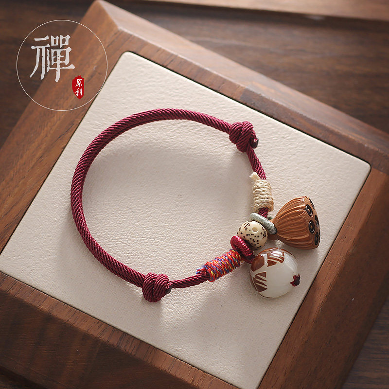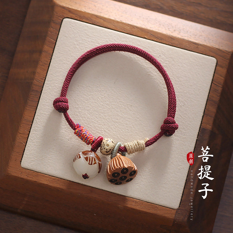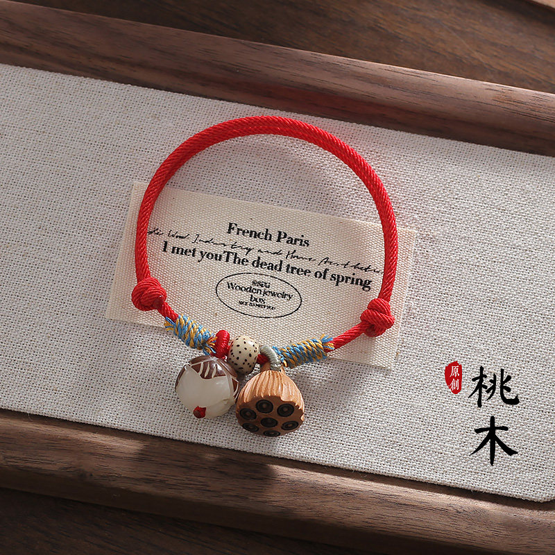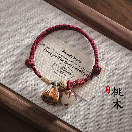 红绳编织桃木儿童手链女款本命年男女护身古风手串闺蜜礼物学生