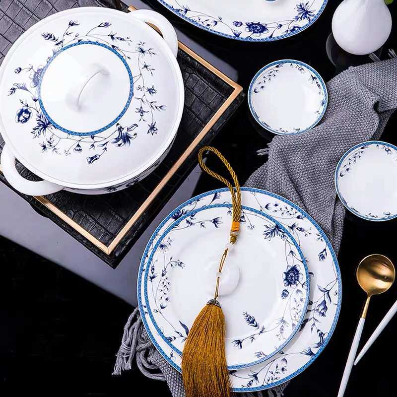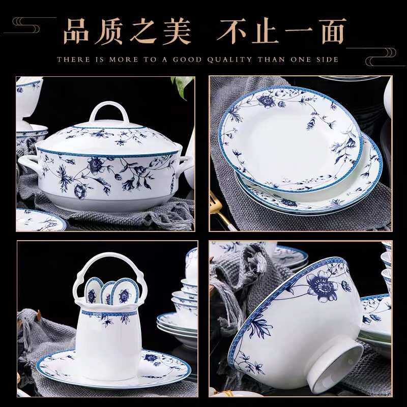 送礼餐具奢华碗盘组合中式陶瓷器景德镇套装家用骨瓷套装碗碟