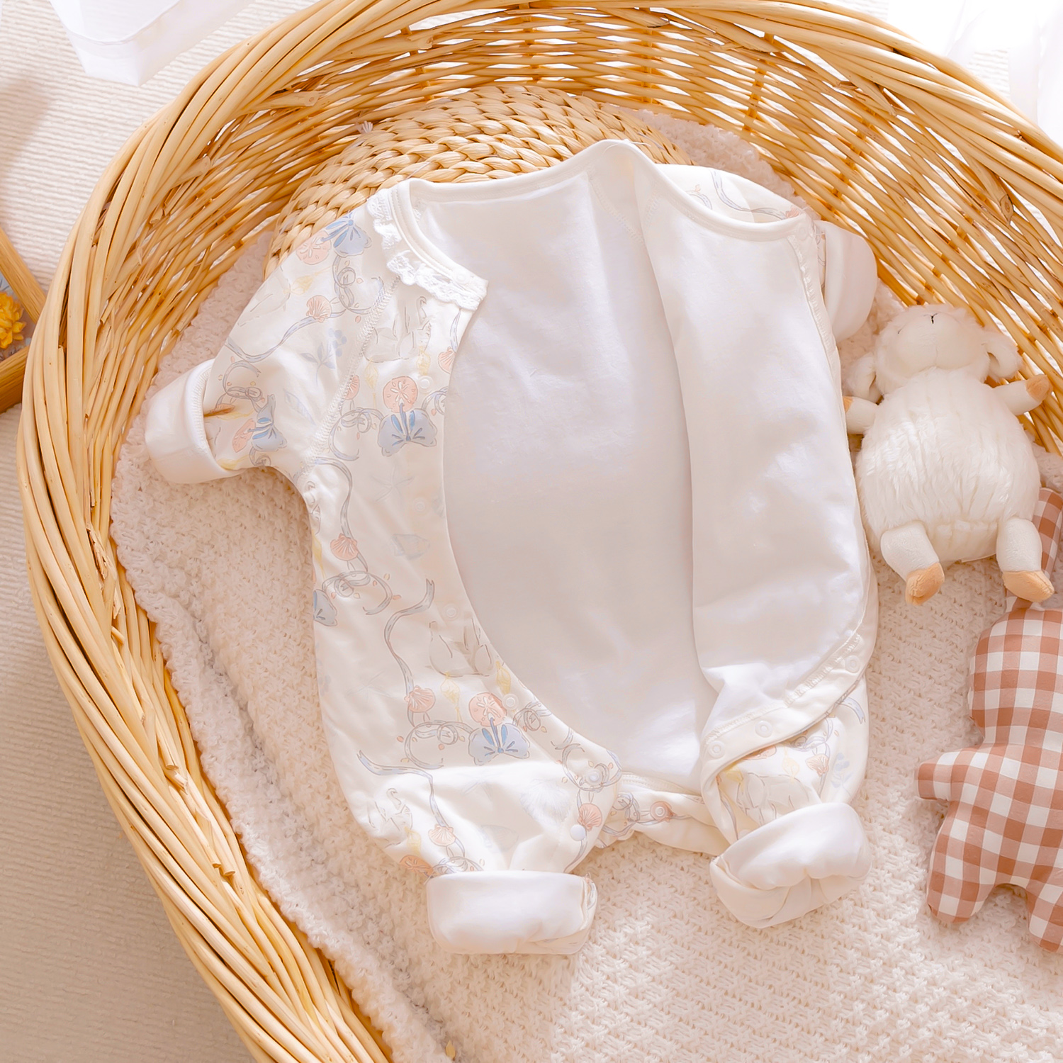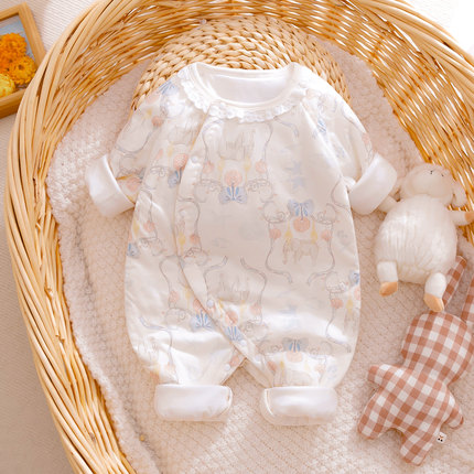 满月宝宝纯棉连体衣服春秋冬季薄棉哈衣夹棉爬服婴儿装家居服A类