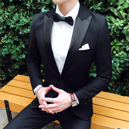 西装套装男士新郎结婚宴会主持人韩版修身西服商务正装塔士多礼服