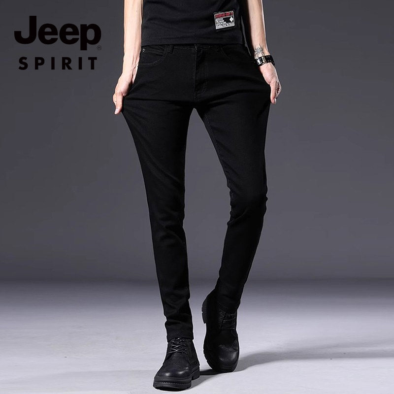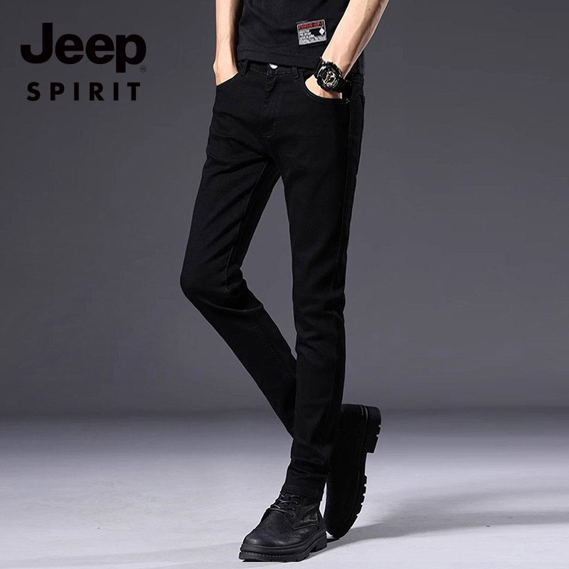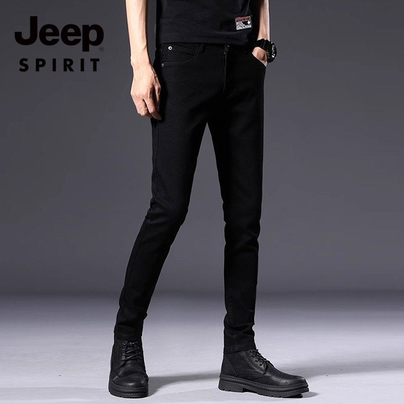 吉普牛仔裤男士冬季新款弹力修身小脚潮流百搭加绒加厚休闲长裤子