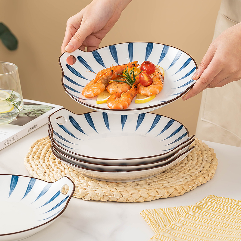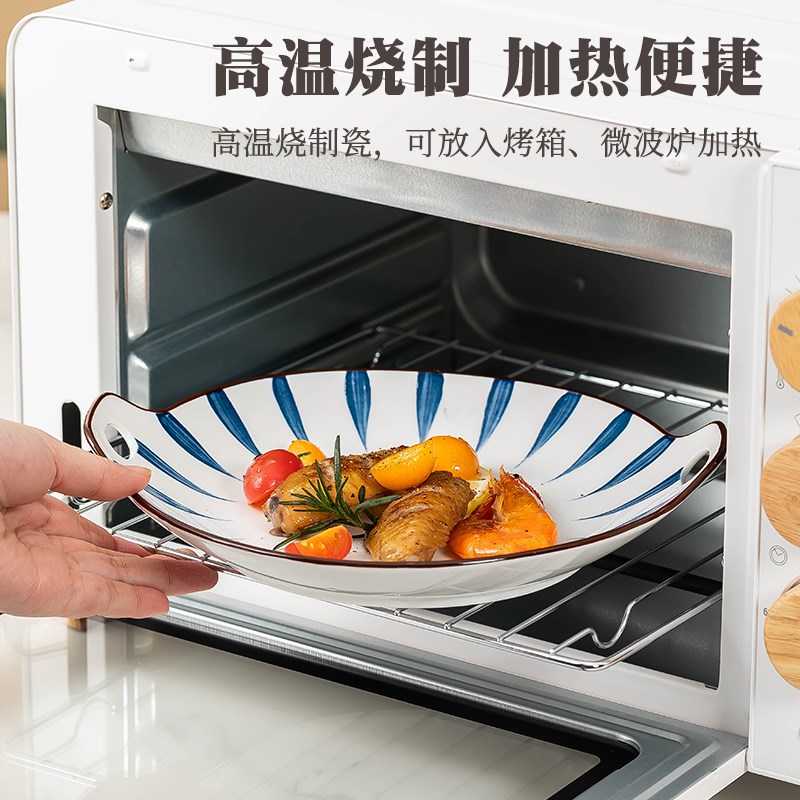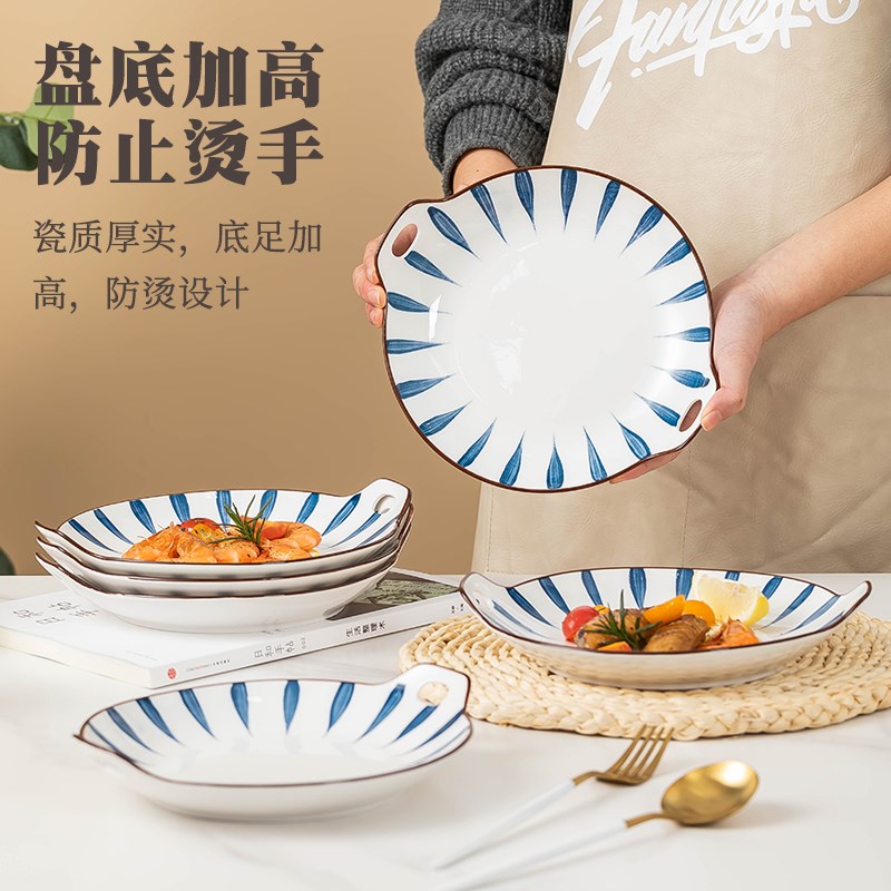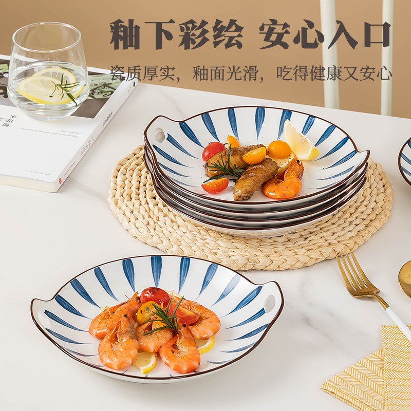日式双耳盘子家用新款创意陶瓷餐盘套装复古釉下彩餐盘早餐盘餐具