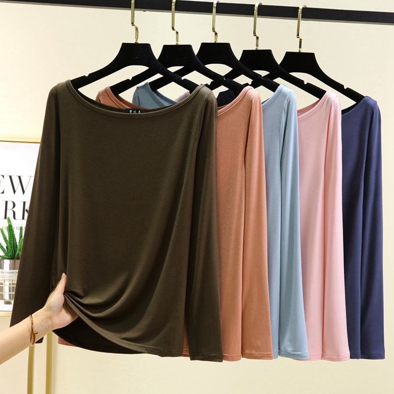 春夏季显瘦一字领长袖T恤露肩露锁骨性感女上衣莫代尔薄款打底衫