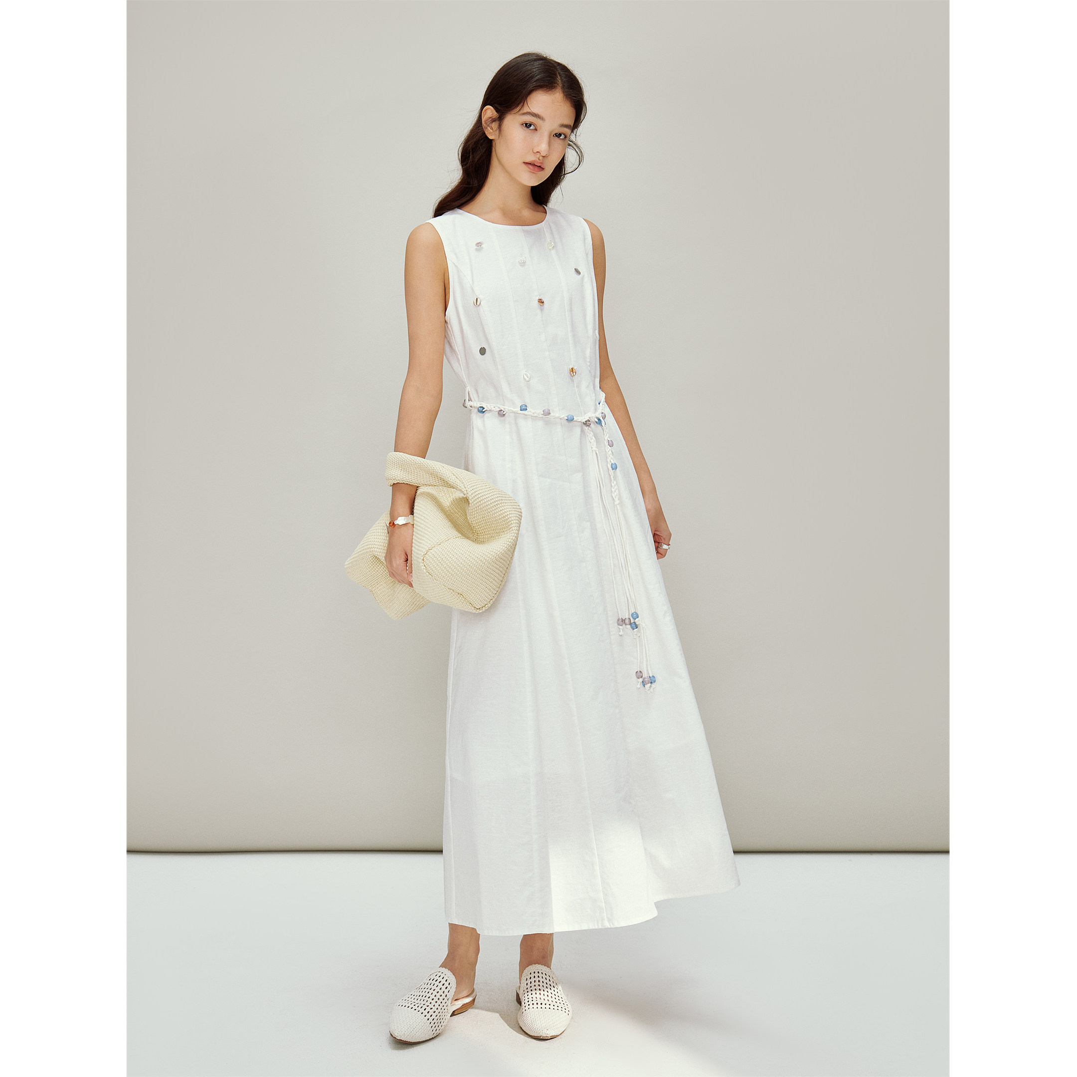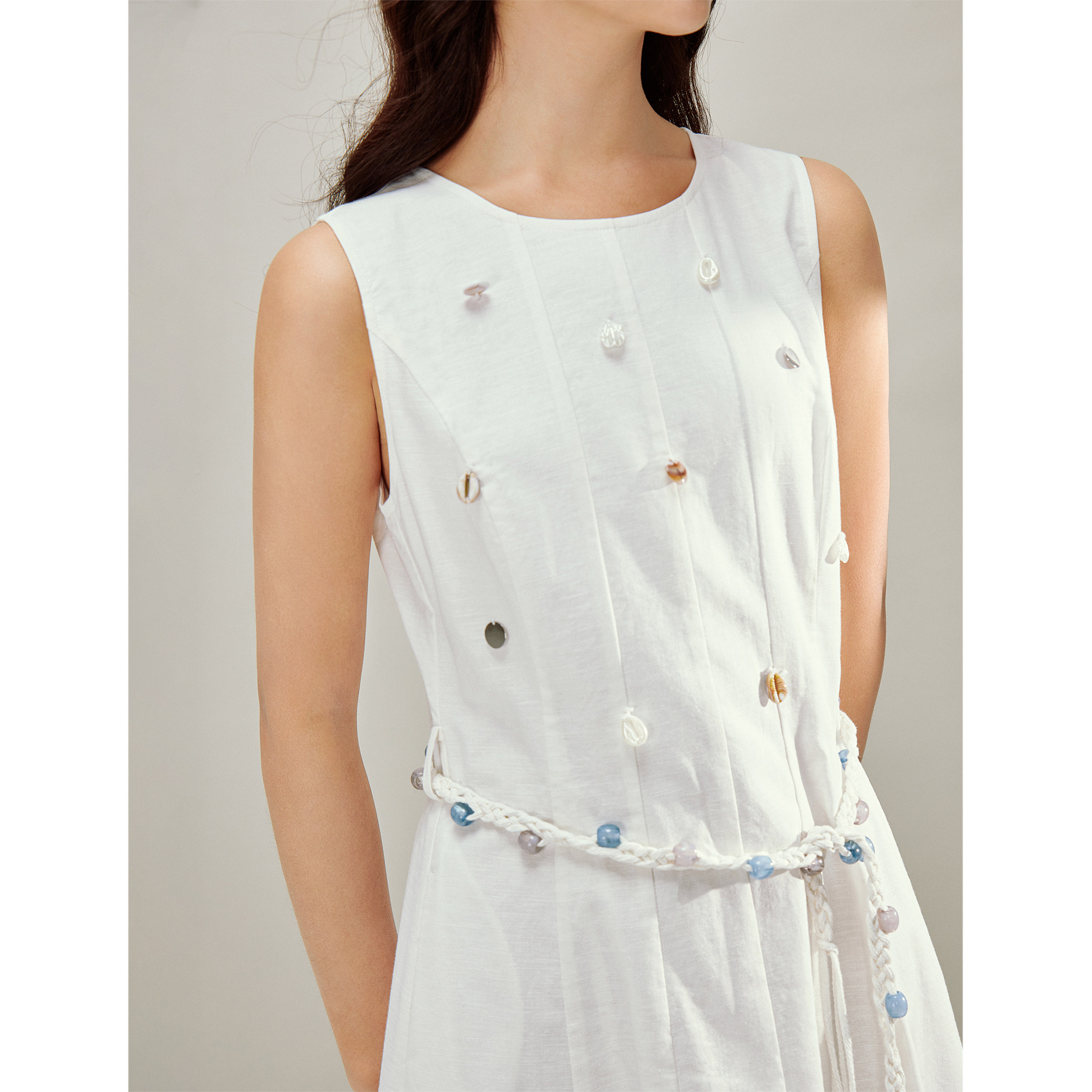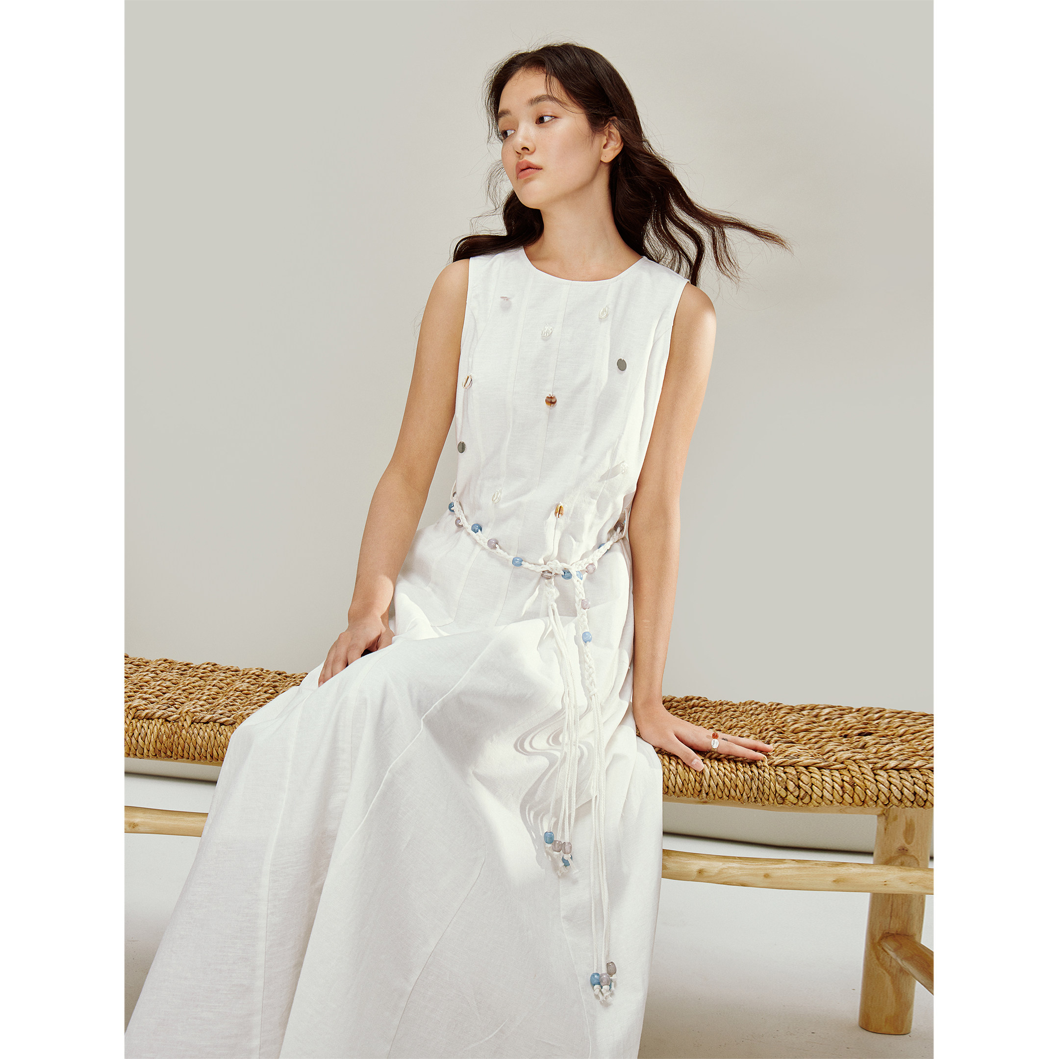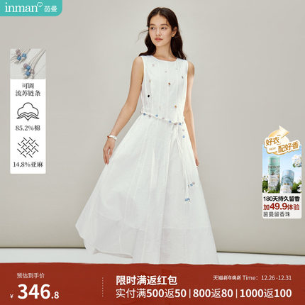 茵曼亚麻流苏链条背心连衣裙2026春季女装新款度假风显瘦无袖裙子
