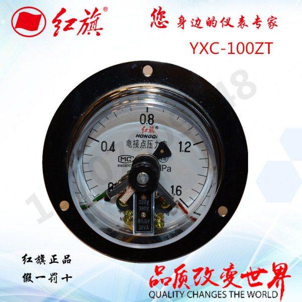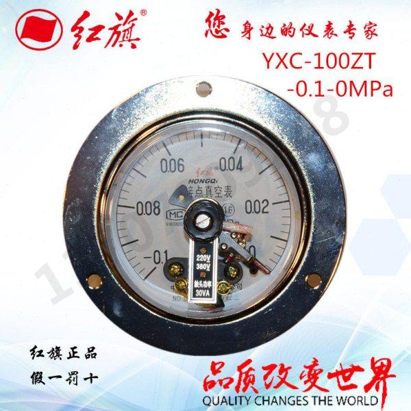 红旗轴向带边磁助式电接点压力表YXC-100ZT 真空磁助轴向压力表