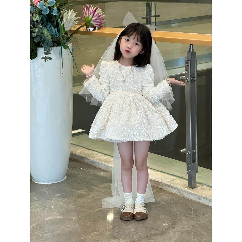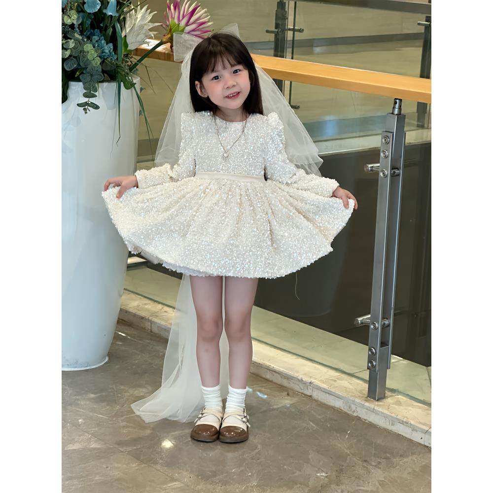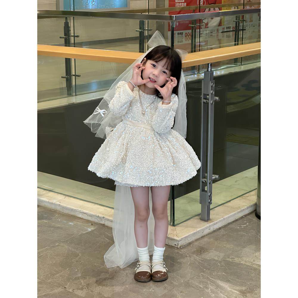女.童爆闪蓬蓬连衣裙花童生日女孩拖尾洛丽塔公主裙表演女宝礼服
