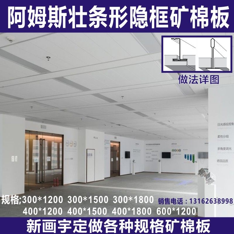 300*1200条形暗架喷砂无孔矿棉板阿姆斯壮覆膜天花吸音耐潮A防火