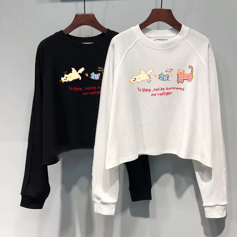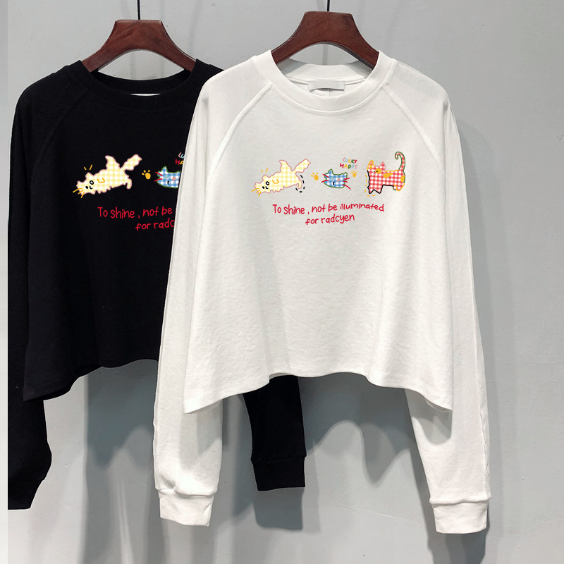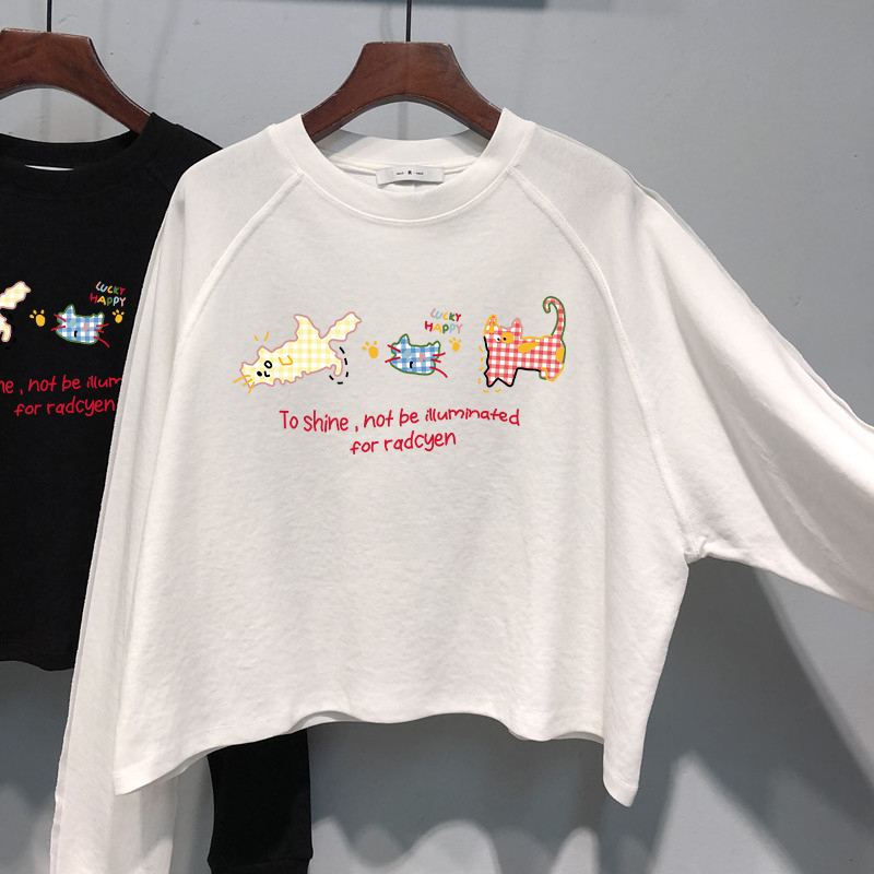 白色t恤女圆领宽松慵懒风大码女装插肩袖长袖早秋chic上衣设计感