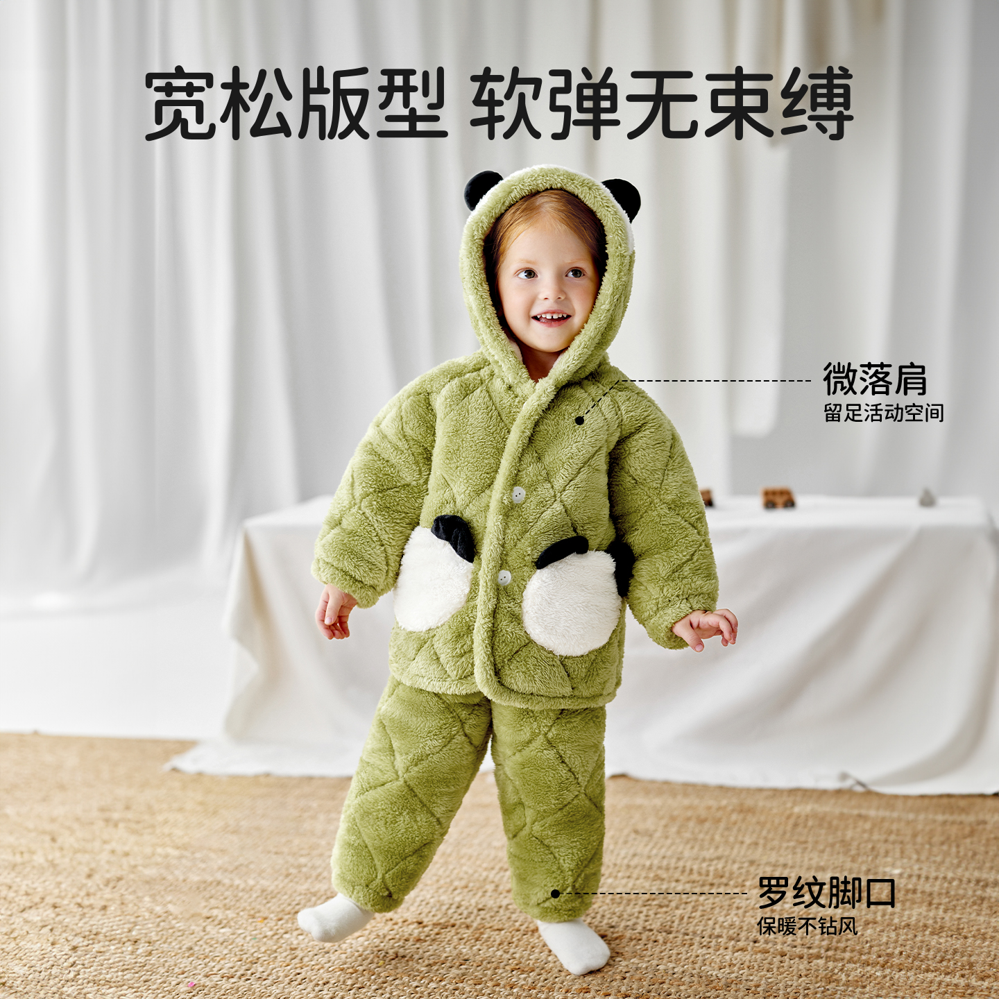 欧孕宝宝家居服2025秋冬季新款加厚儿童法兰绒睡衣男女童保暖套装