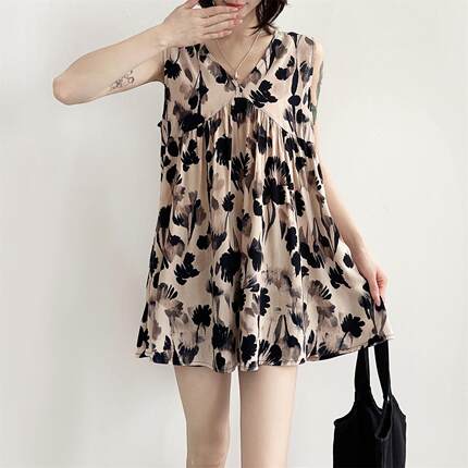人造棉夏季女士2025新款小清新夏装文艺薄款背心无袖裙衫棉绸上衣