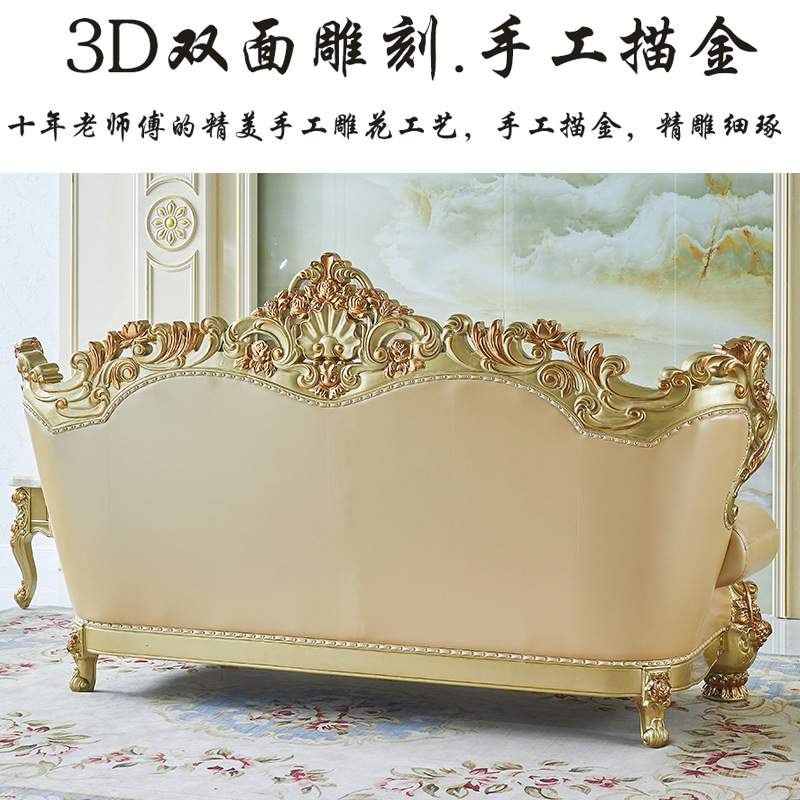 欧式别墅客厅真皮沙发奢华大户型高档全实木雕花1+23组合套房家具