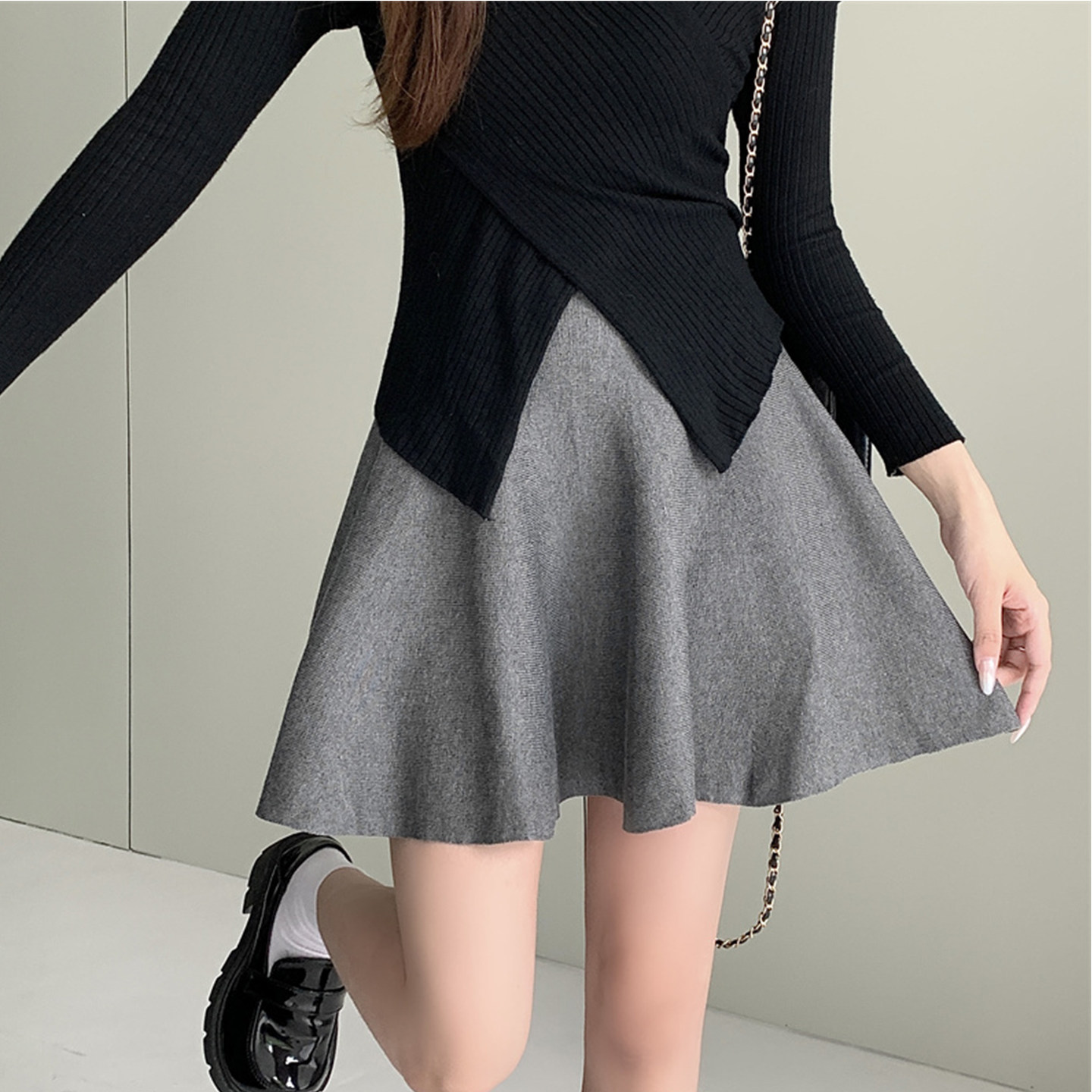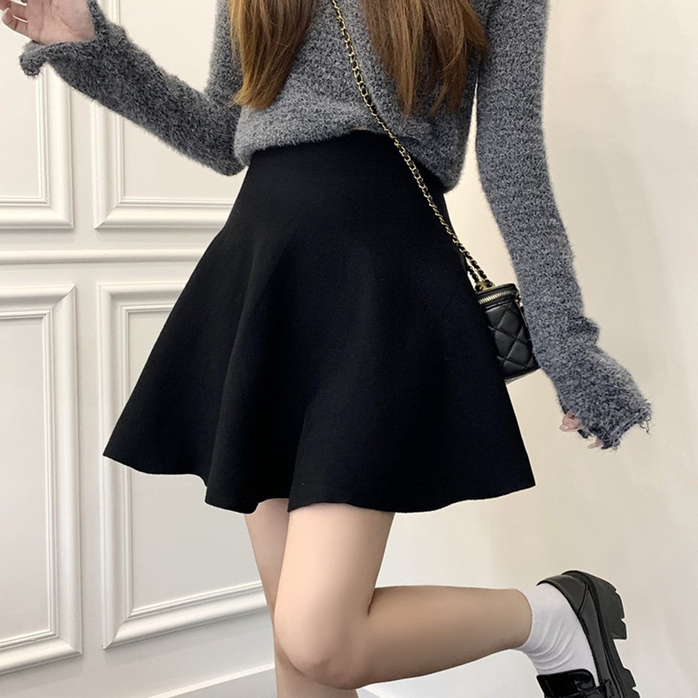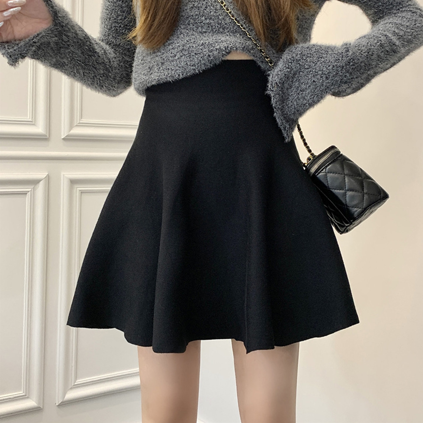 大码针织半身裙女打底裙小个子百褶裙高腰a字裙伞裙胖mm短裙子秋