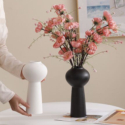 白色陶瓷花瓶摆件客厅插花仿真花酒柜2025新款摆设高级感现代简约