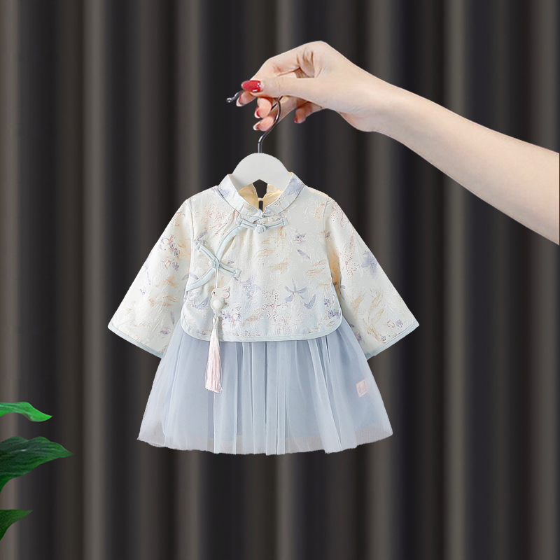 汉服女童春秋连衣裙女宝宝新中式唐装儿童古风裙子国风公主裙纱裙