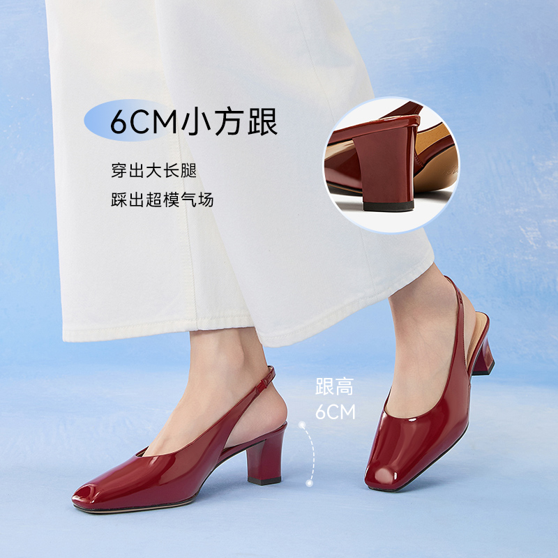 百思图2025夏季新款后空凉鞋时尚潮流方头粗跟女凉鞋A5963BH5