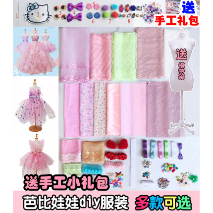 芭比娃娃衣服材料包手工DIY套餐布艺少儿服装设计小碎花布料布组