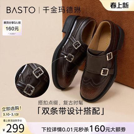 百思图26春季商场新款乐福鞋雕花布洛克英伦小皮鞋女单鞋D3521AM6