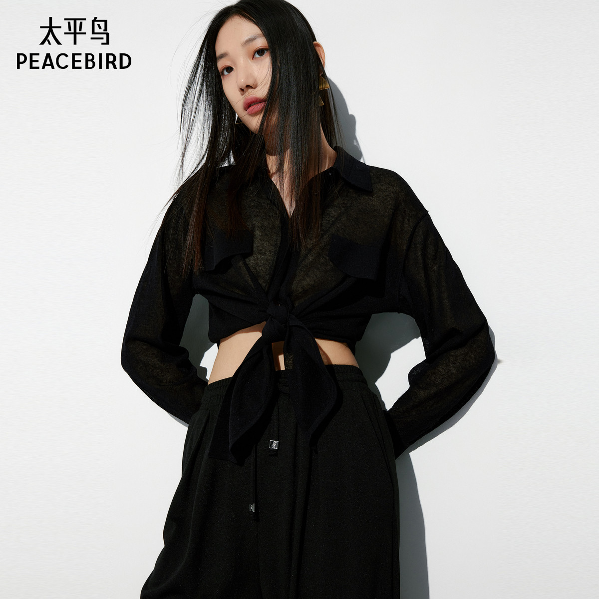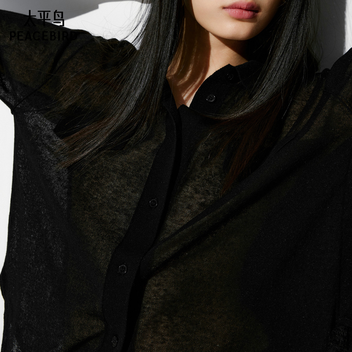 太平鸟 女士棉麻长袖衬衫侧边高开衩设计多穿休闲时尚衬衣潮