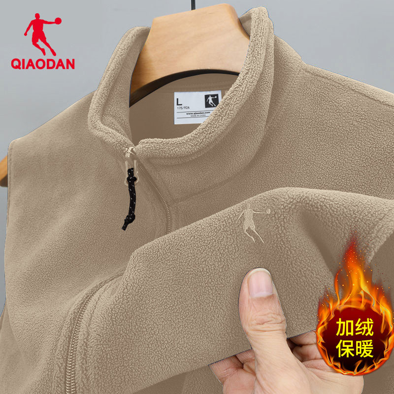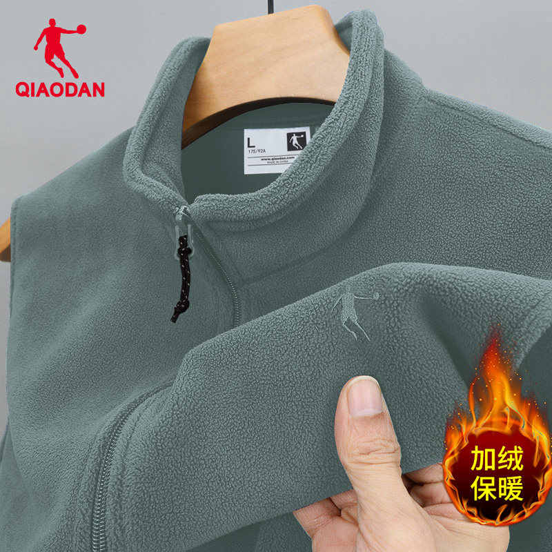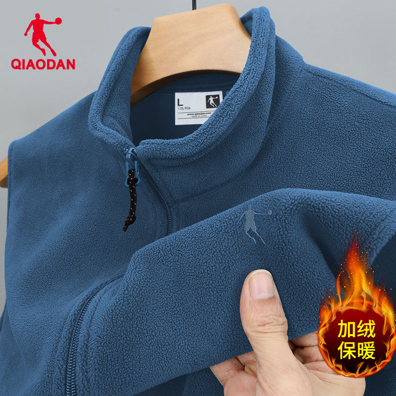 乔丹抓绒衣马甲男冬季坎肩外穿开衫立领背心摇粒绒外套加绒爸爸装
