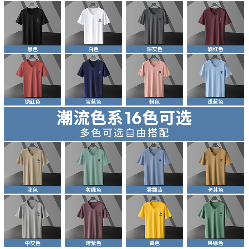 莫代尔小熊t恤男士短袖潮流V领上衣服夏季冰丝速干凉感半袖打底衫