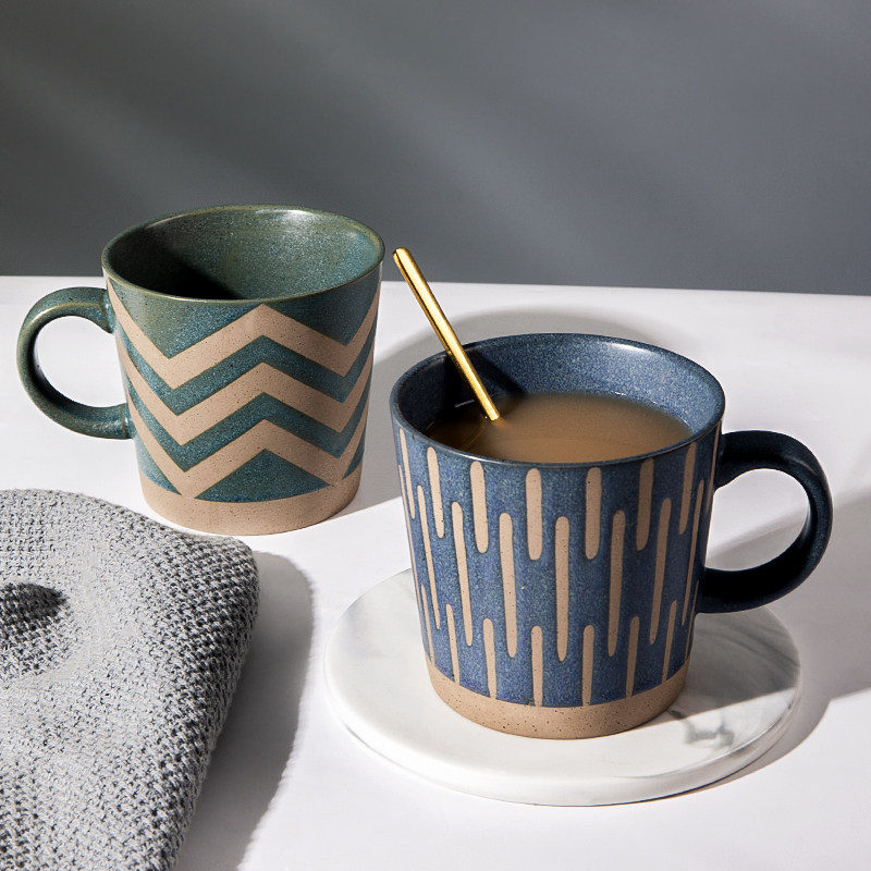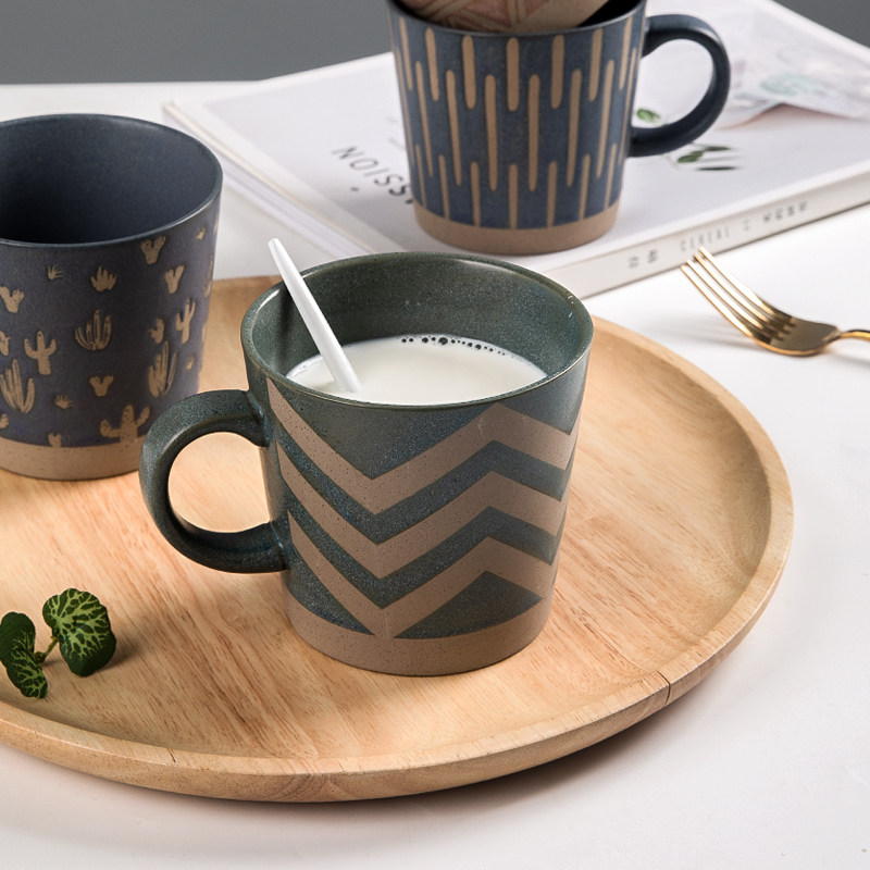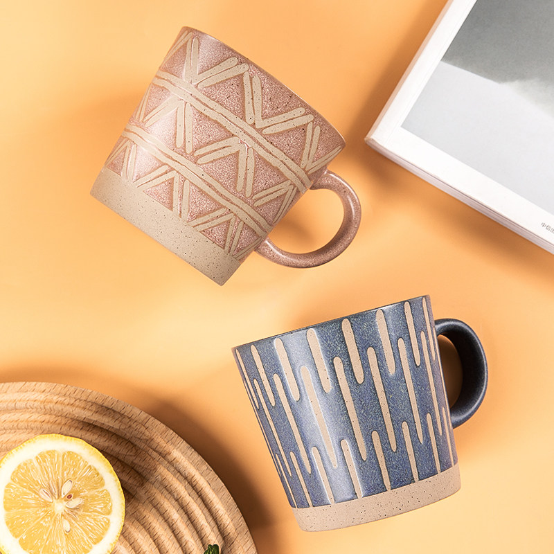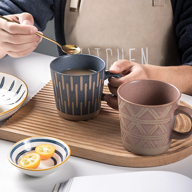 复古粗陶马克杯家用陶瓷喝水杯子日式男生办公室咖啡杯茶杯牛奶杯