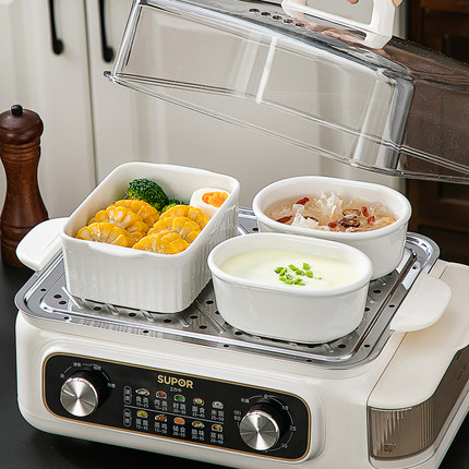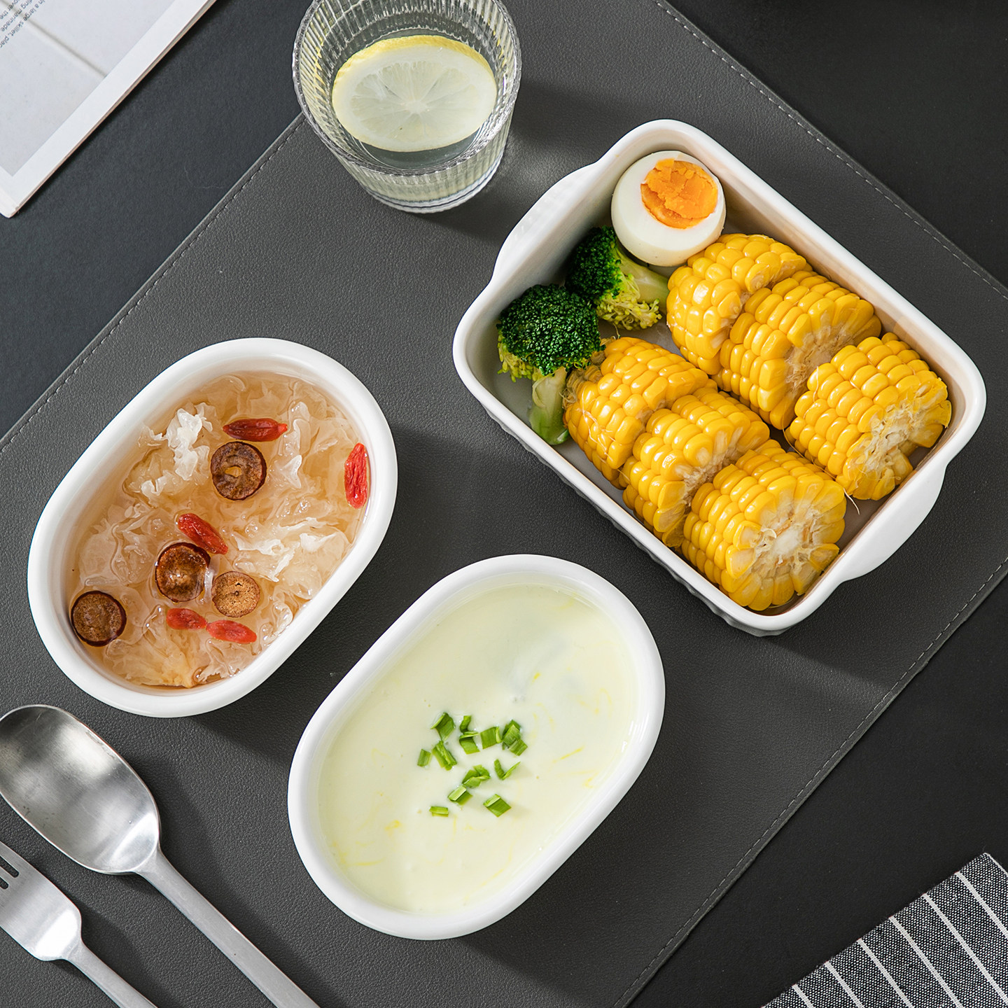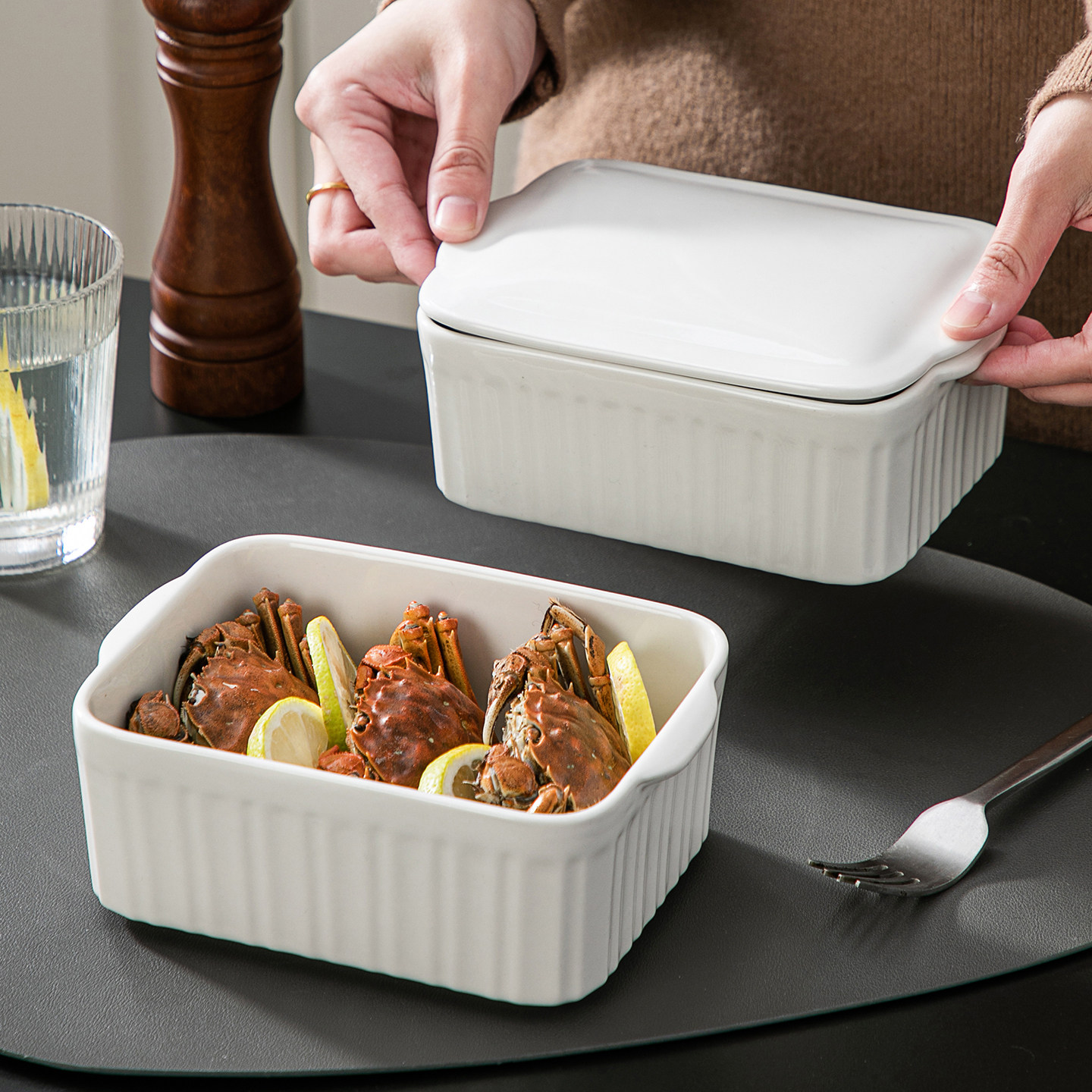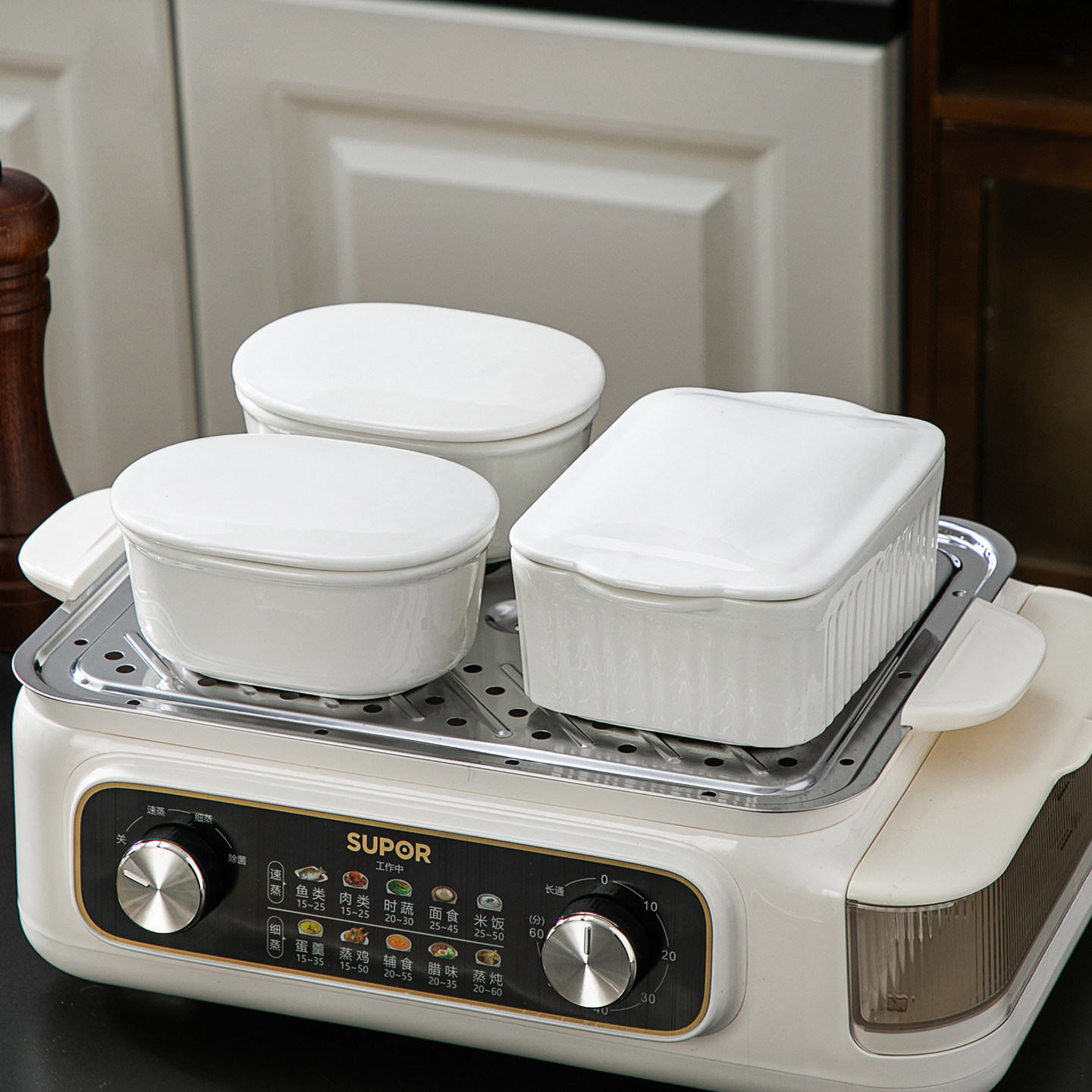 双耳长方蒸碗带盖陶瓷家用厨房蒸锅专用炖碗大容量长方形蒸菜碗
