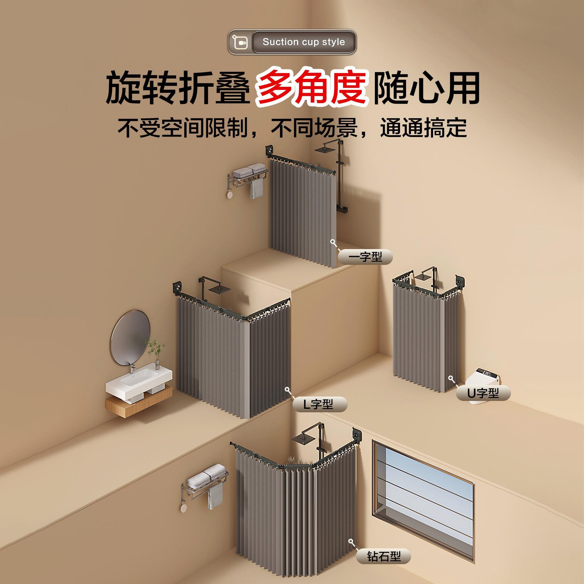 浴室高档吸盘免打孔折叠杆卫生间加厚保暖防水浴帘隐形淋浴隔断帘