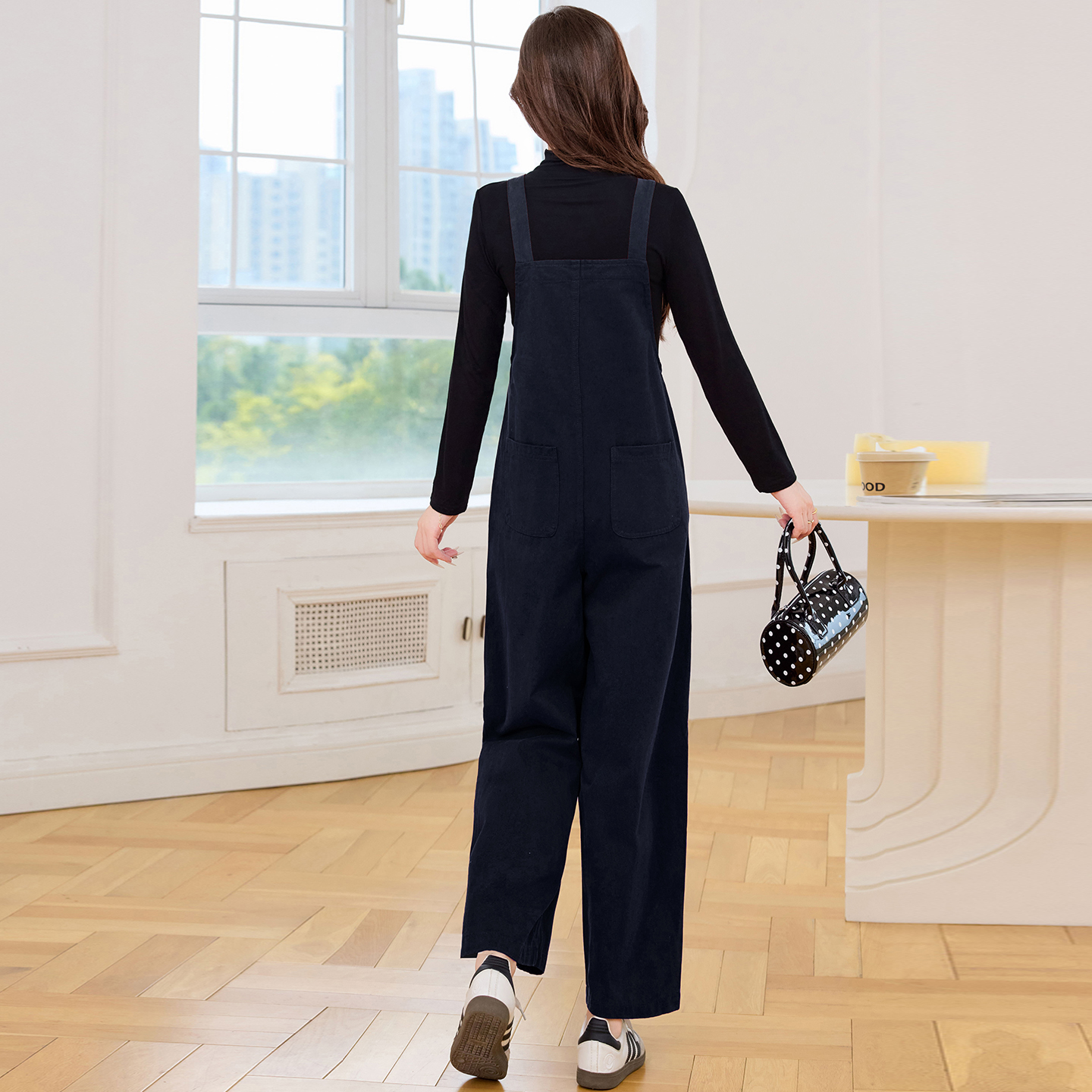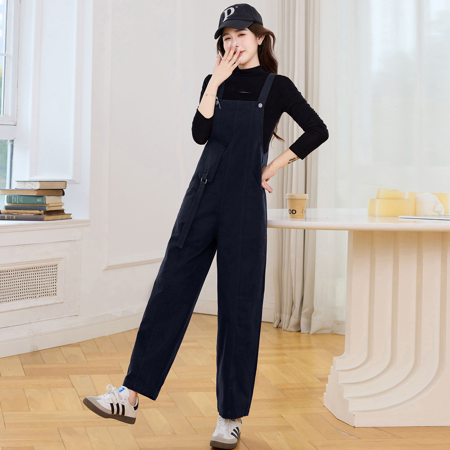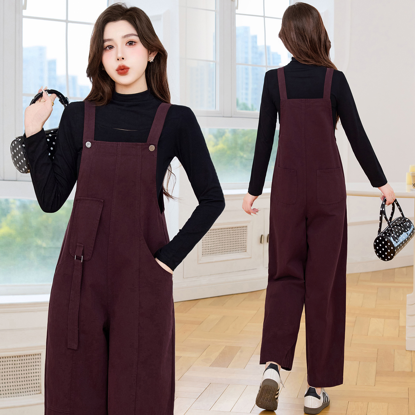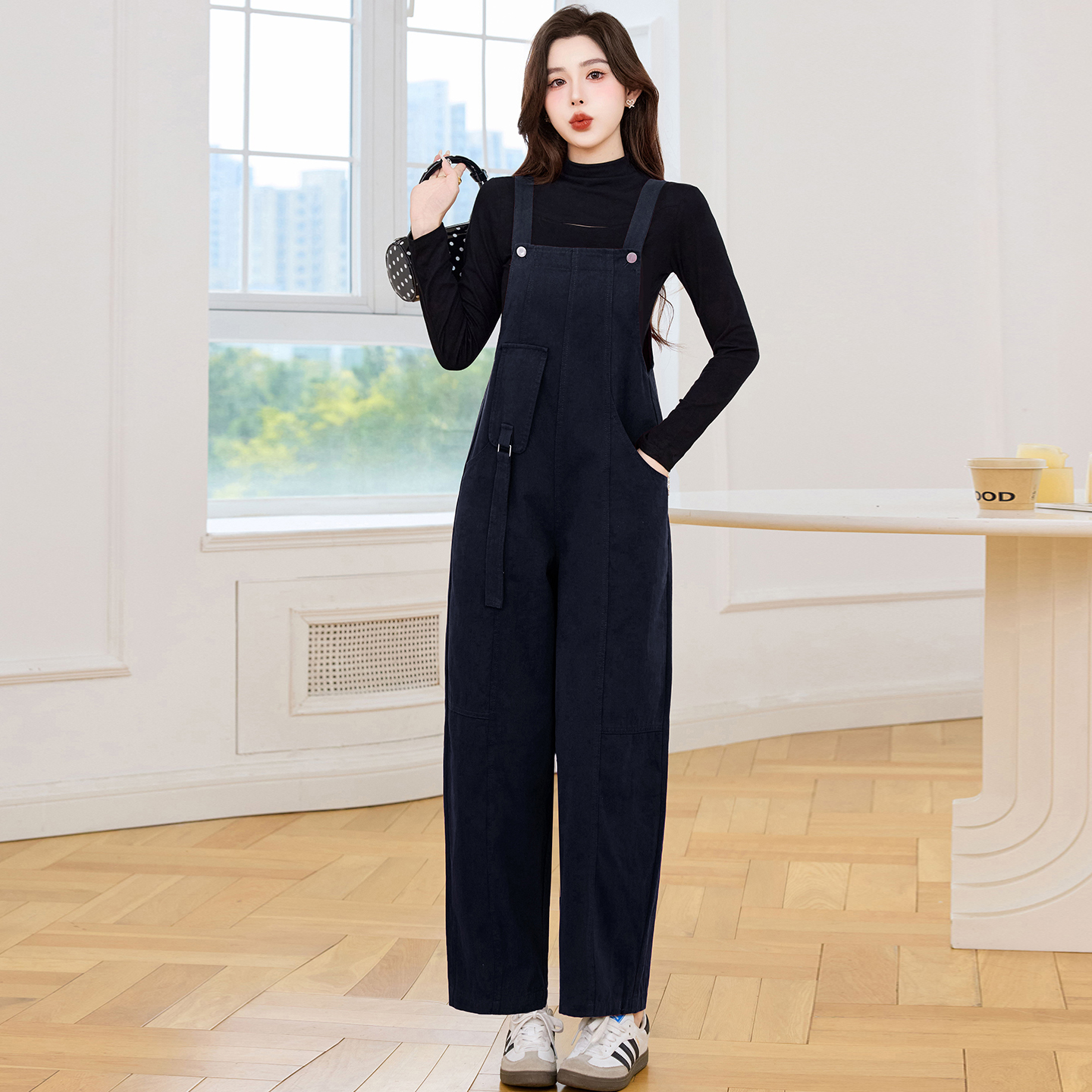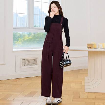 早秋设计感背带裤宽松背带连衣裤