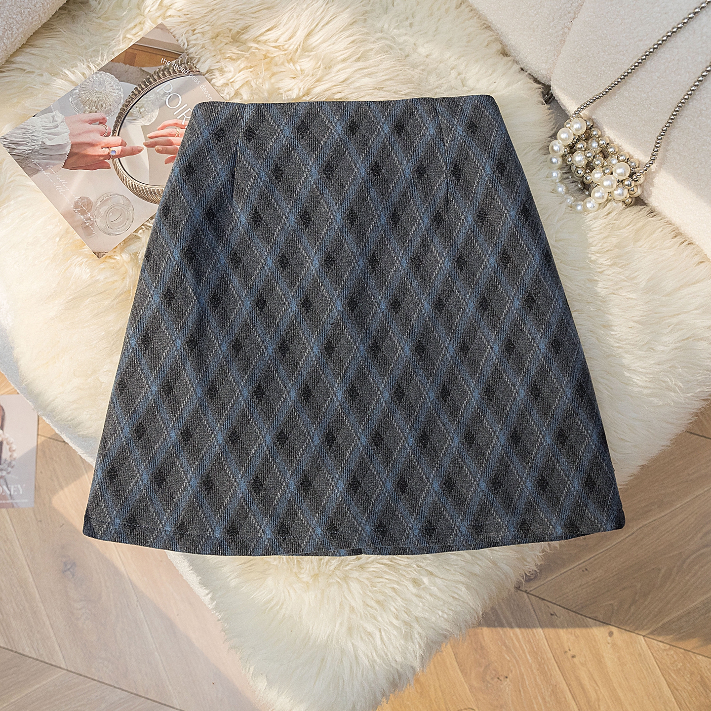格纹毛呢半身裙女2025年秋冬新品学院风高腰a字裙小个子百搭短裙