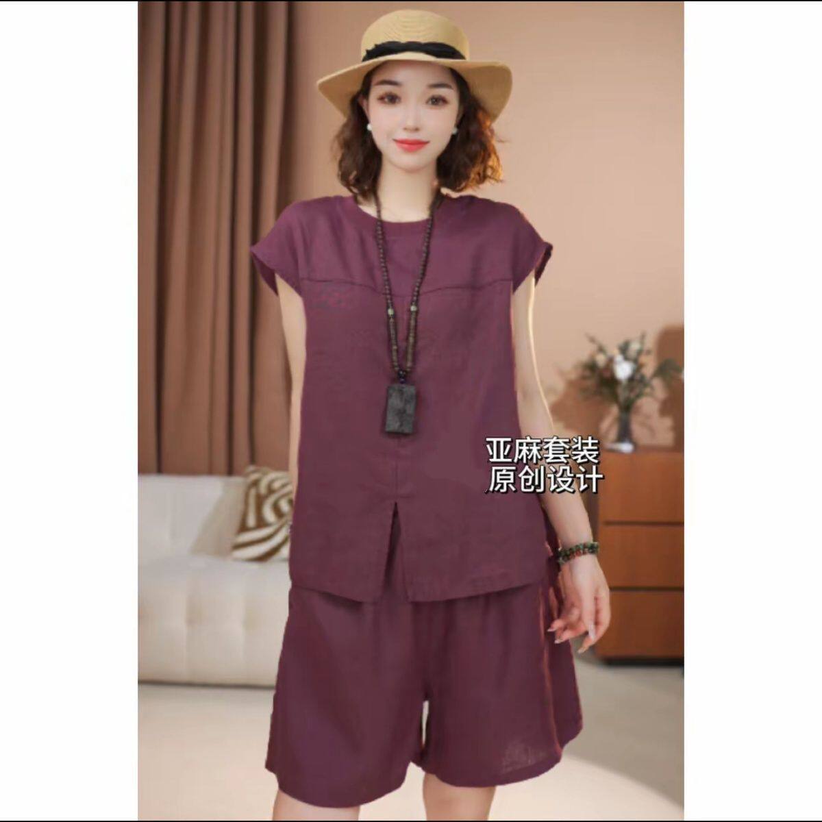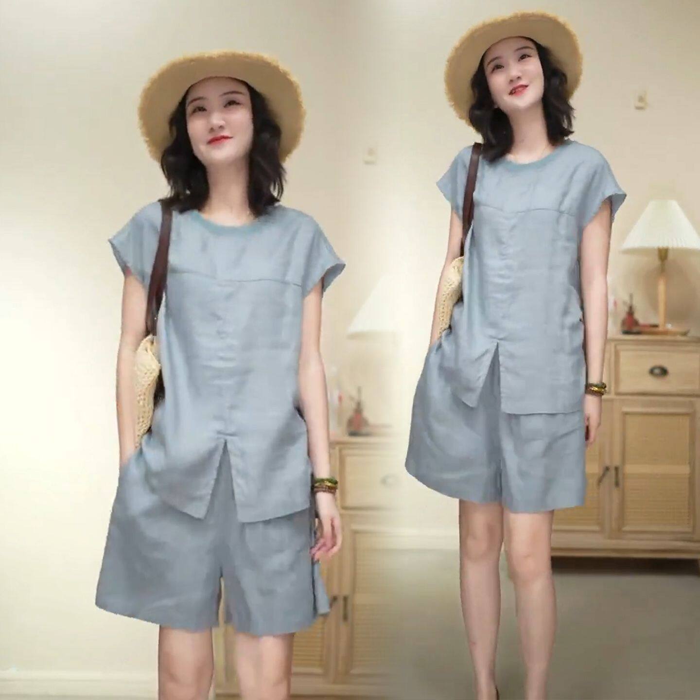 女士亚麻短裤套装2025夏季新款