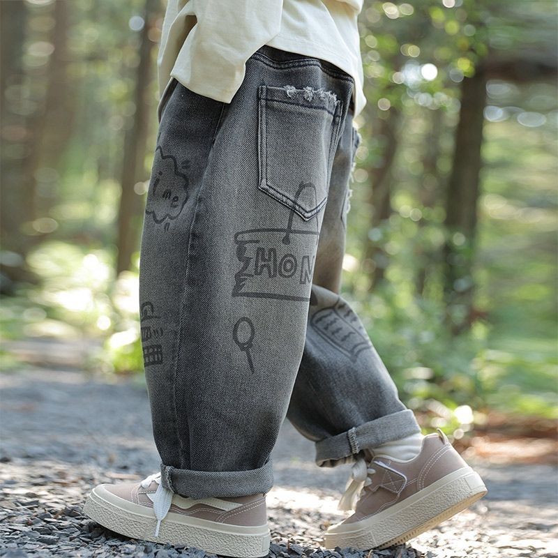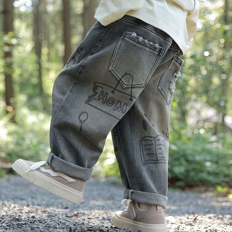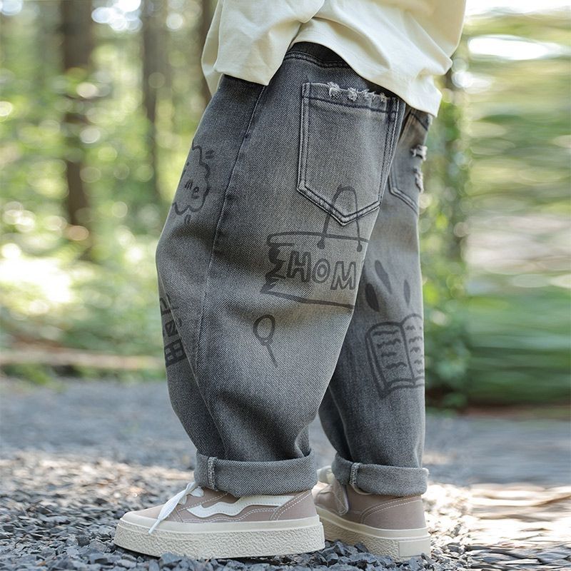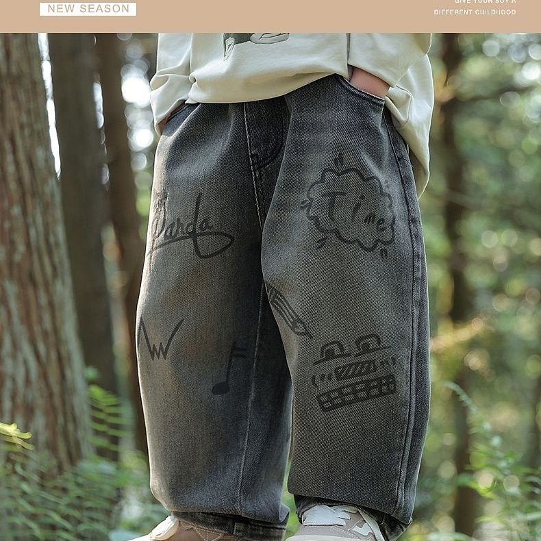 男童牛仔裤秋装2025新款儿童春秋款宽松运动裤男孩秋季直筒休闲裤