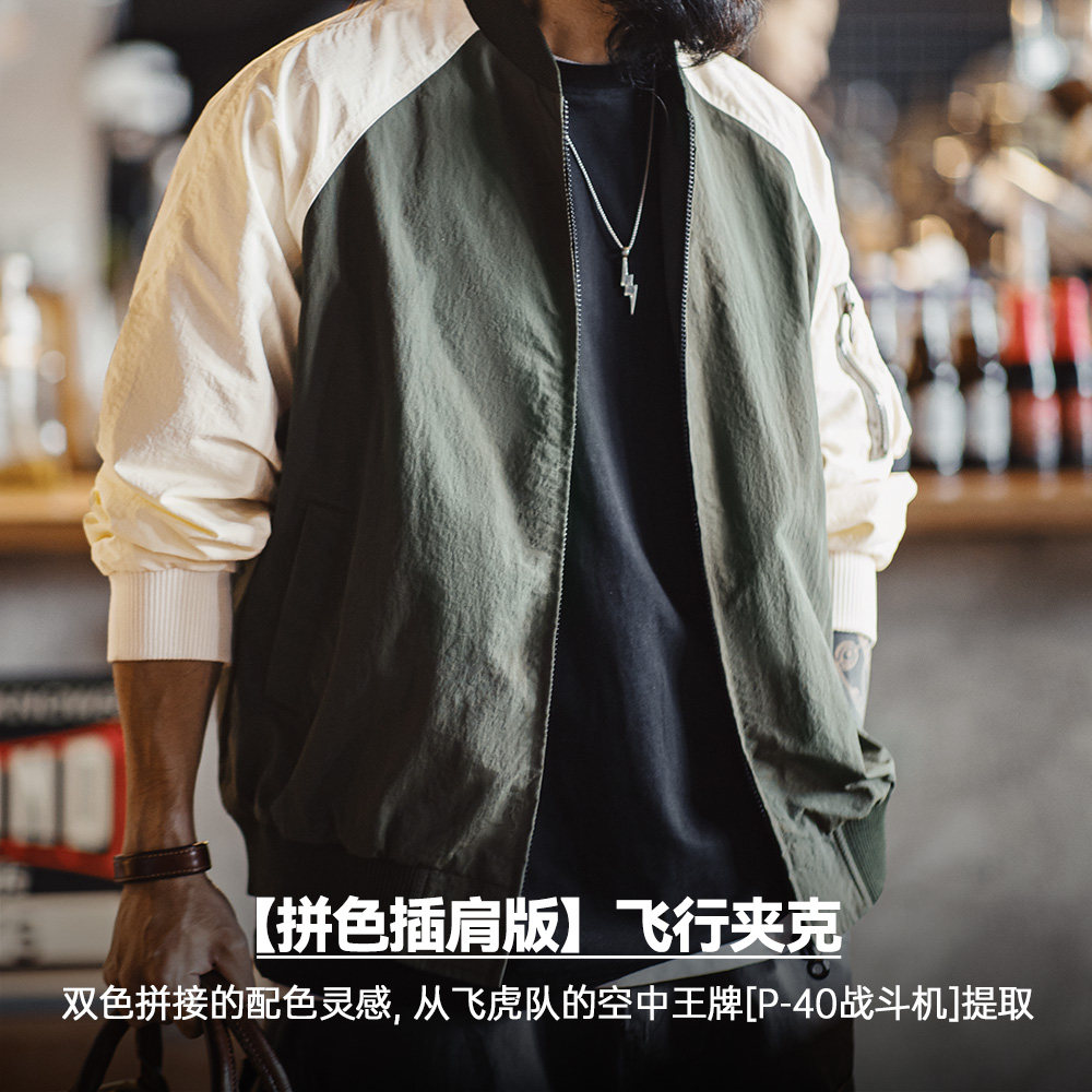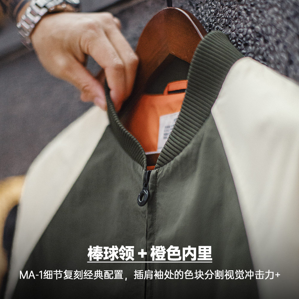 马登工装美式复古撞色MA1飞行员夹克拼色插肩棒球服休闲外套男春