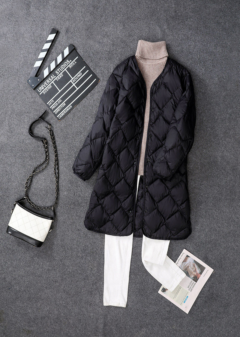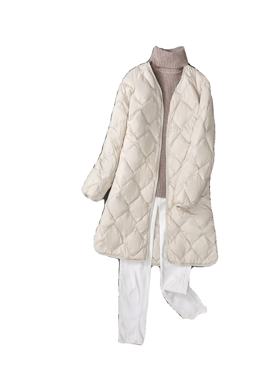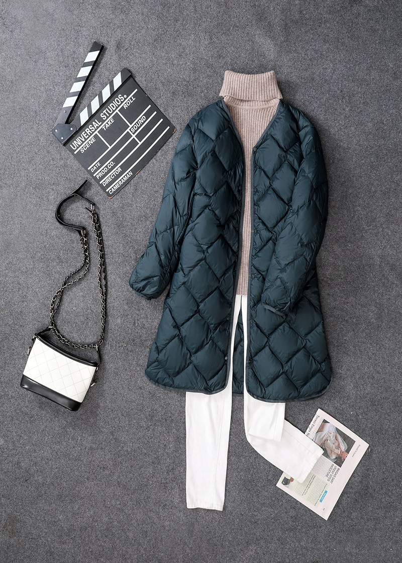 无领羽绒服内胆女轻薄中长款V领菱形格超轻便薄款中老年妈妈外套