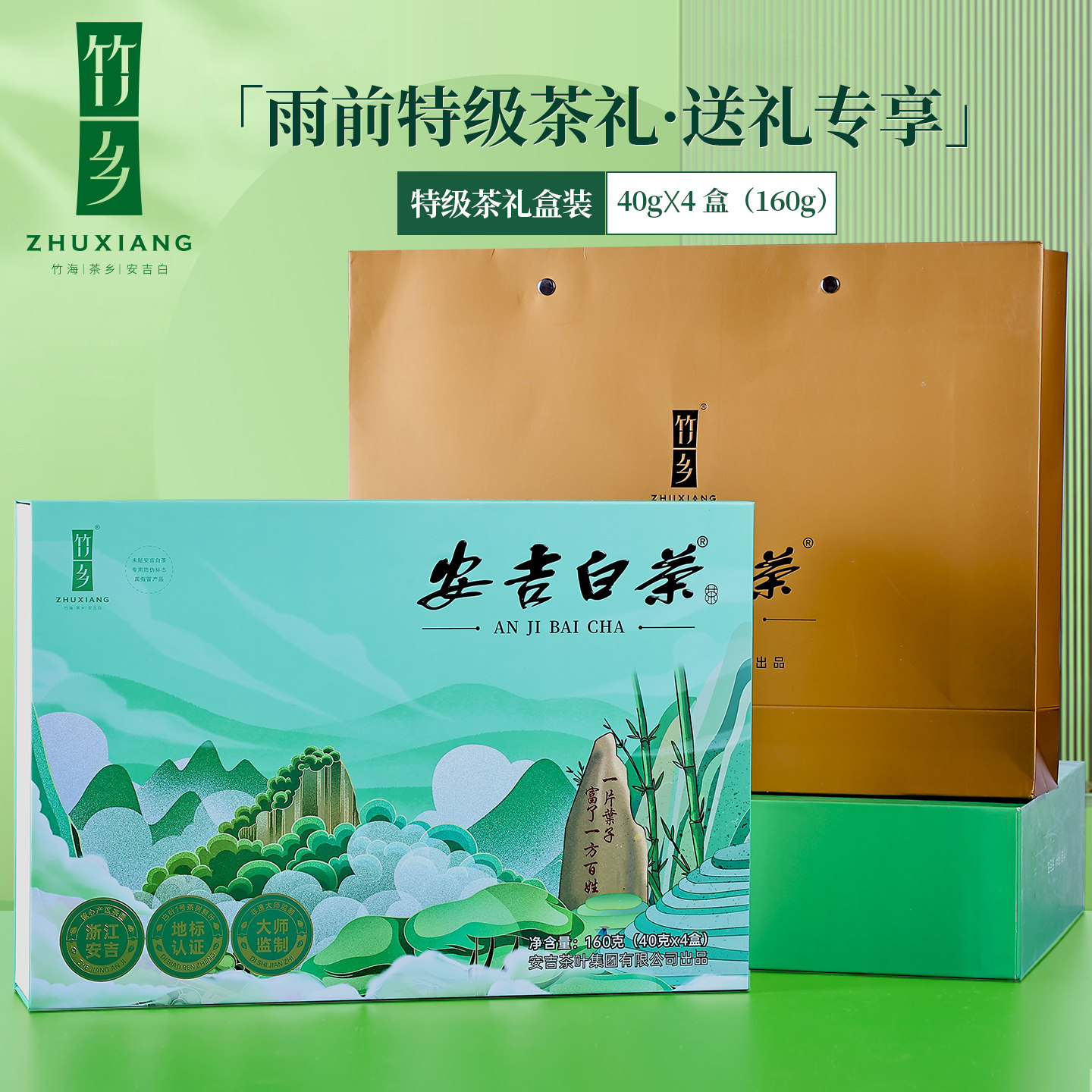 安吉白茶2025新茶160g节日送长辈礼盒装正宗安吉高山雨前绿春茶叶