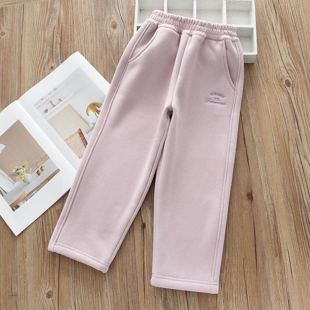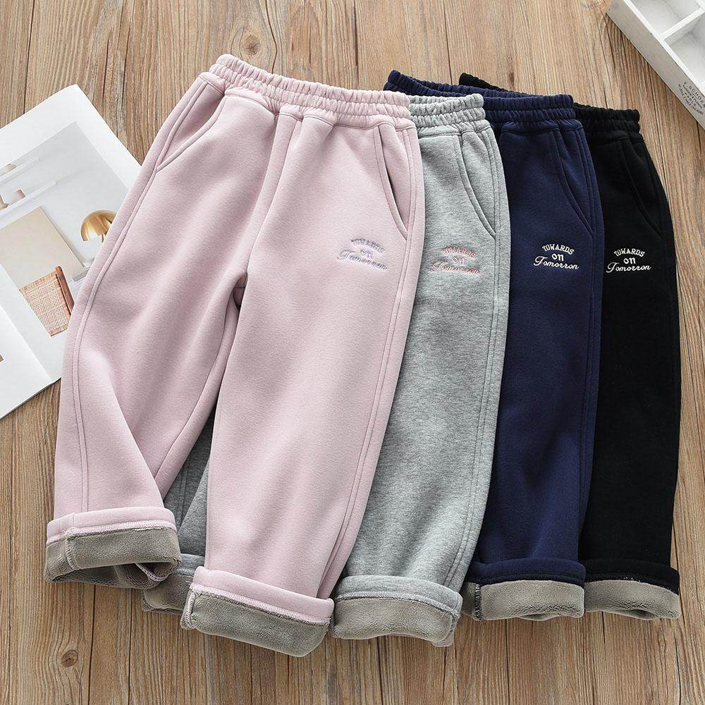 校服神裤洋气童装冬儿童女童一条过冬撸猫绒小脚直筒裤加绒运动裤