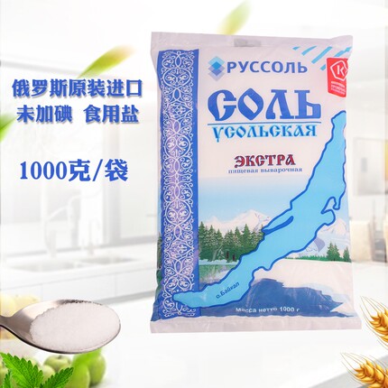 俄罗斯无碘盐原装进口盐细盐家用调味品未加碘食用盐1000克