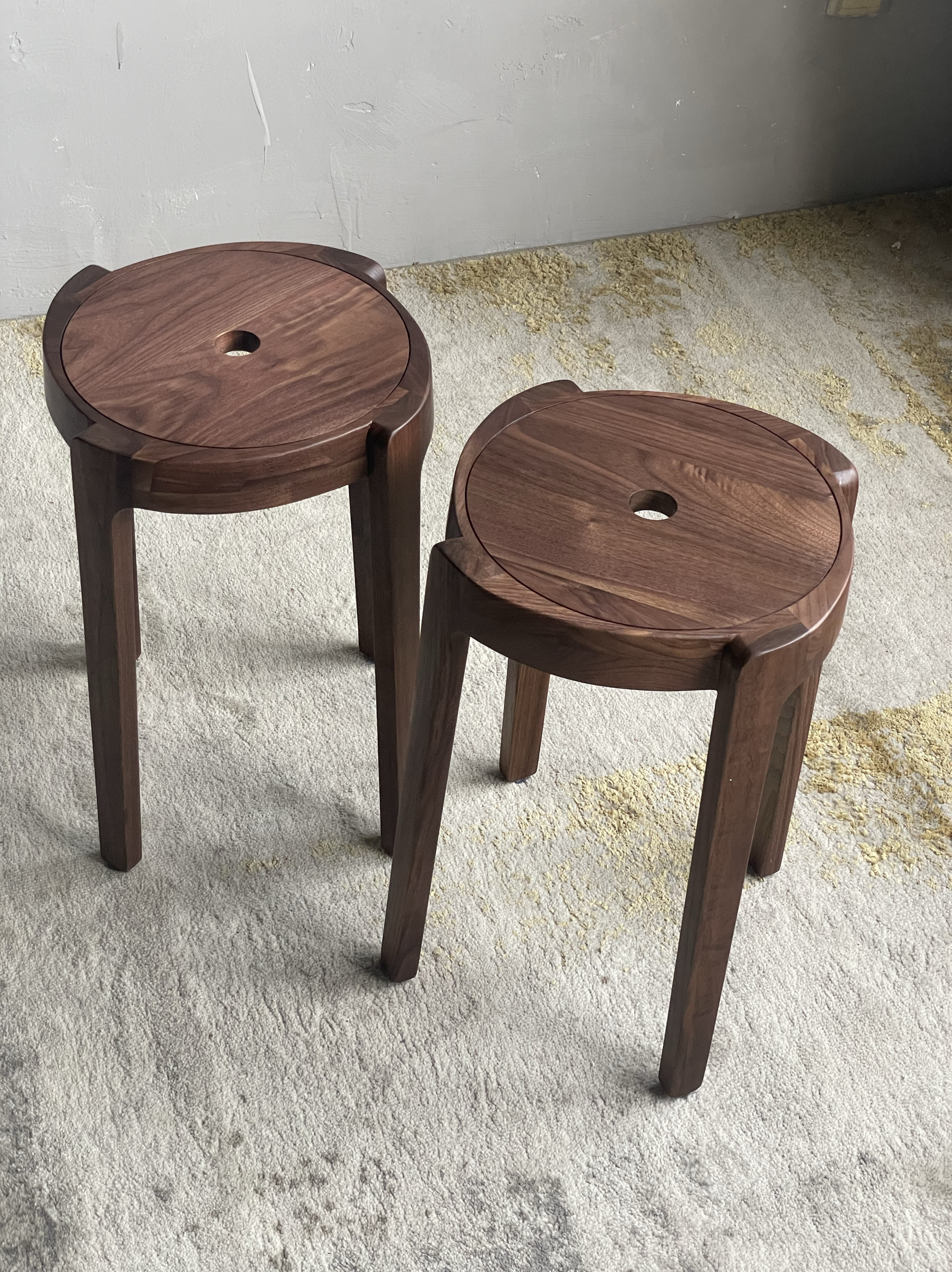 苏州家具工厂直销北美黑胡桃全实木榫卯圆凳可叠放无辅材实木凳