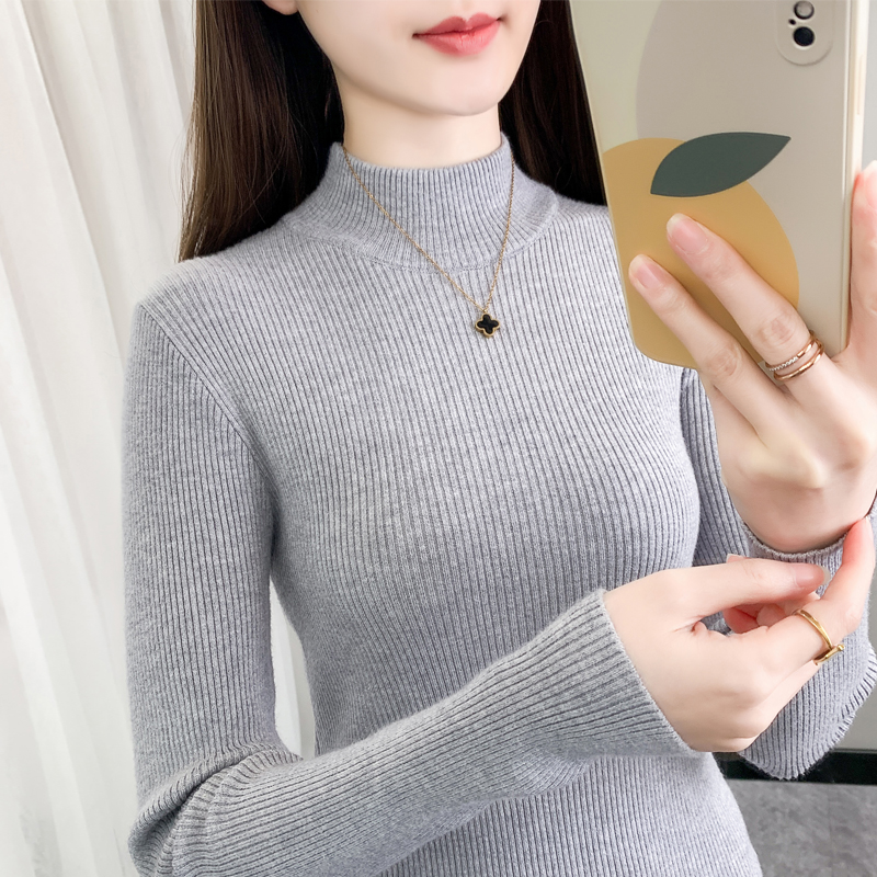 半高领毛衣打底衫女长袖内搭2025春秋新款中领百搭修身紧身针织衫