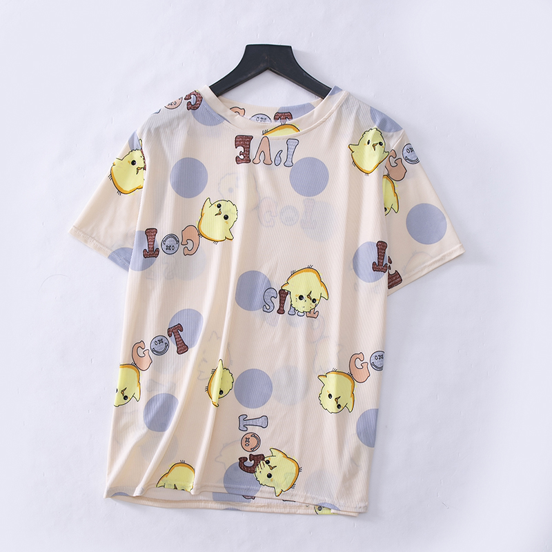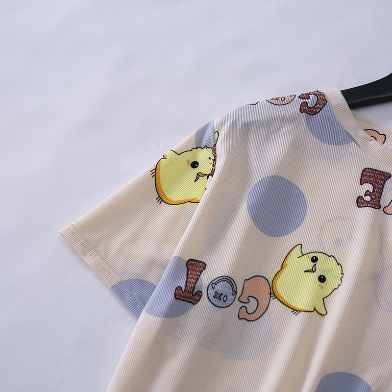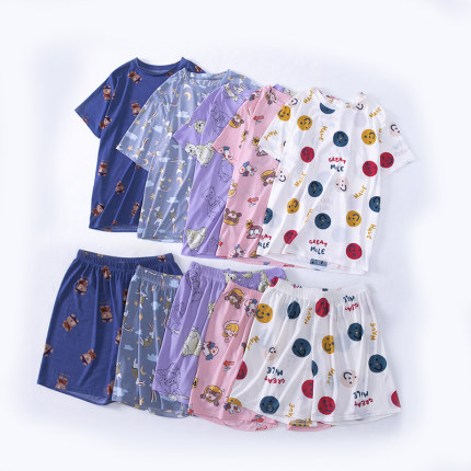 E77-1四季款女可外穿短袖短裤花色减龄弹力冰丝凉感家居时尚套装