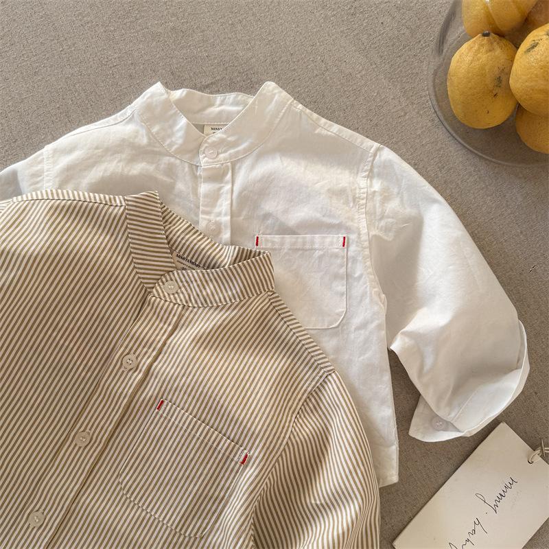 儿童衬衫25春男童日系潮牌立领休闲衬衣宝宝长袖上衣纯色长袖衬衣
