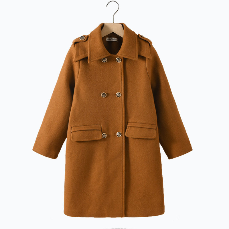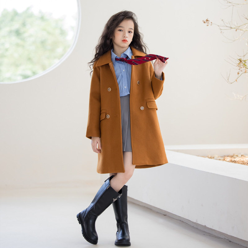 女童呢子外套中长款童装上衣女孩衣服秋冬大童学院风毛